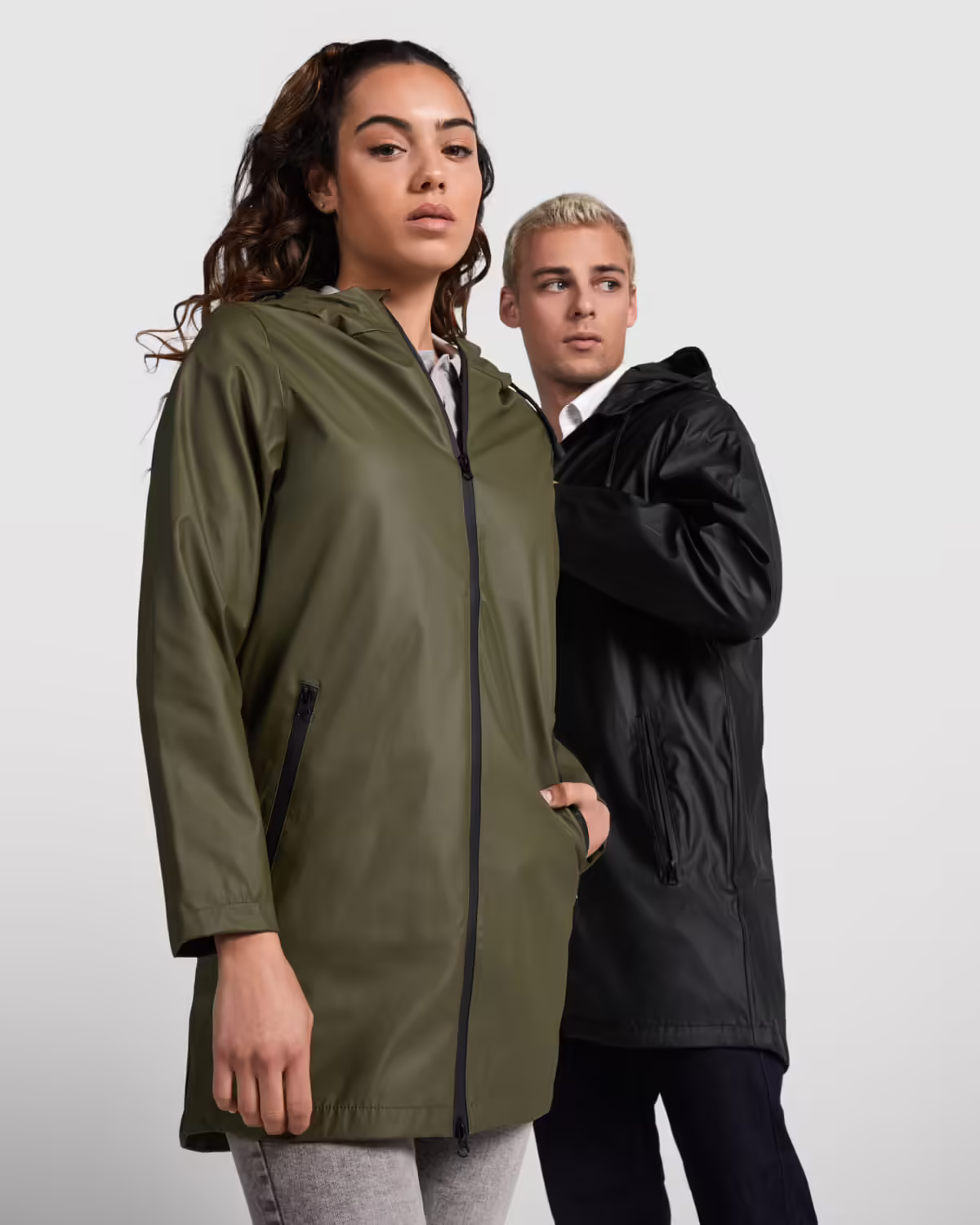 Este chubasquero confeccionado en 100% poliéster, te proporcionará la comodidad y libertad de movimientos que necesitas mientras te mantiene seca y protegida de la lluvia.