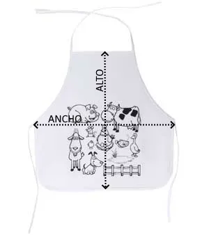 Delantal infantil de non-woven con diseño para colorear. Incluye 5 ceras en varios colores. Talla única ajustable.