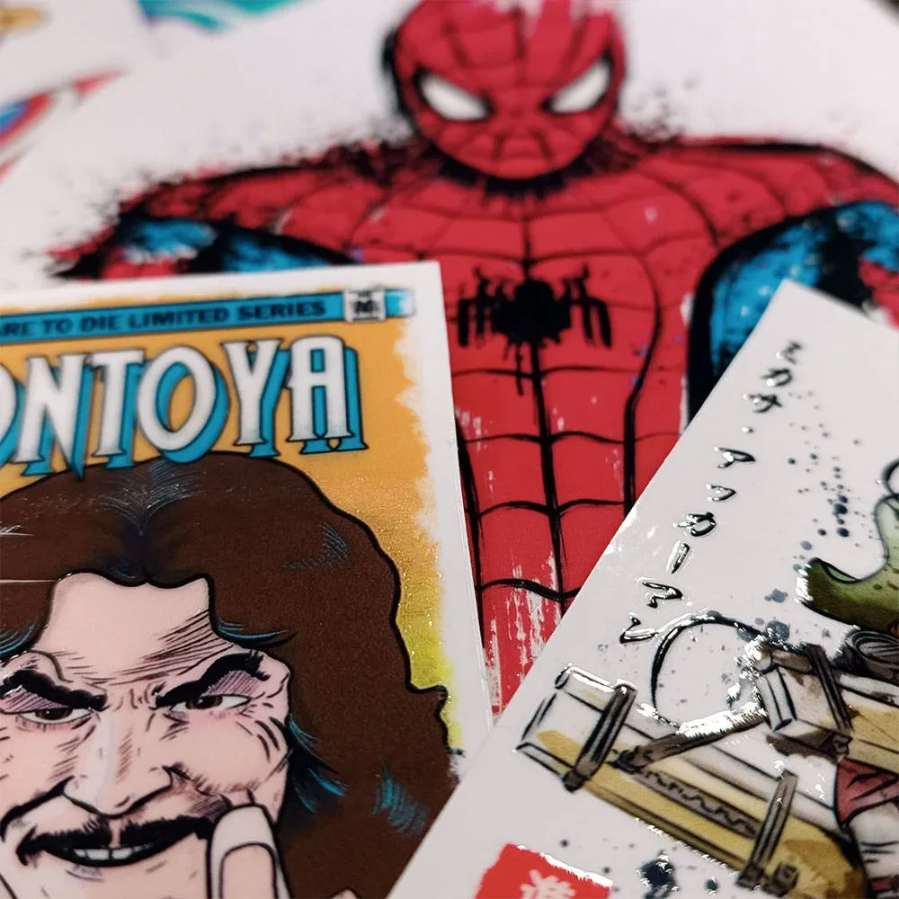 El DTF UV es un transfer tipo pegatina protegida con capas de barniz, resistente a los roces para pegar en cualquier tipo de material no textil como vidrio, cartón o plástico, entre otros.