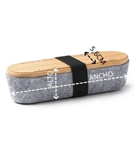 Estuche con tapa de bambú y cuerpo realizado en fieltro RPET. Tapa con función de regla y soporte para smartphone.