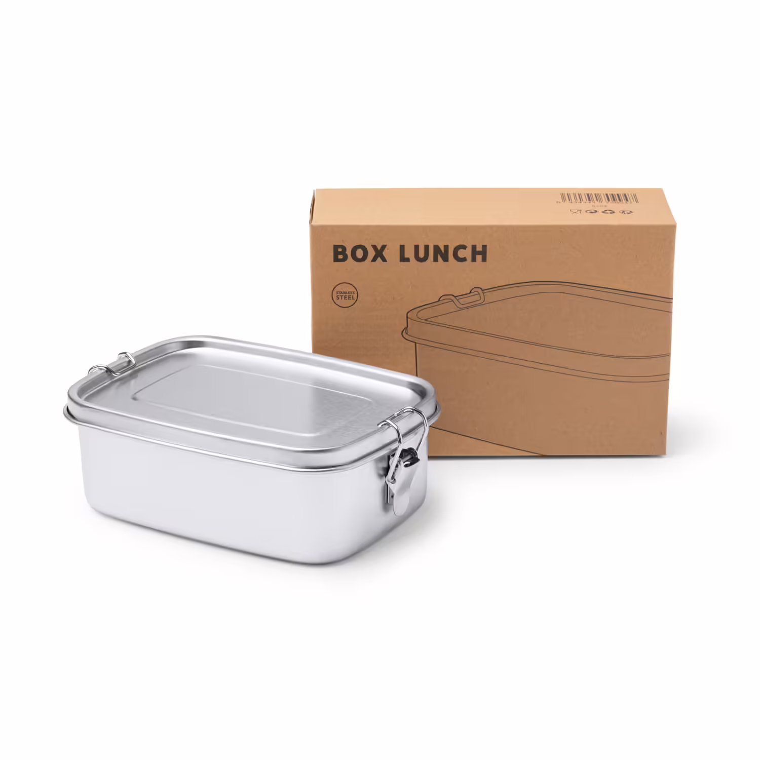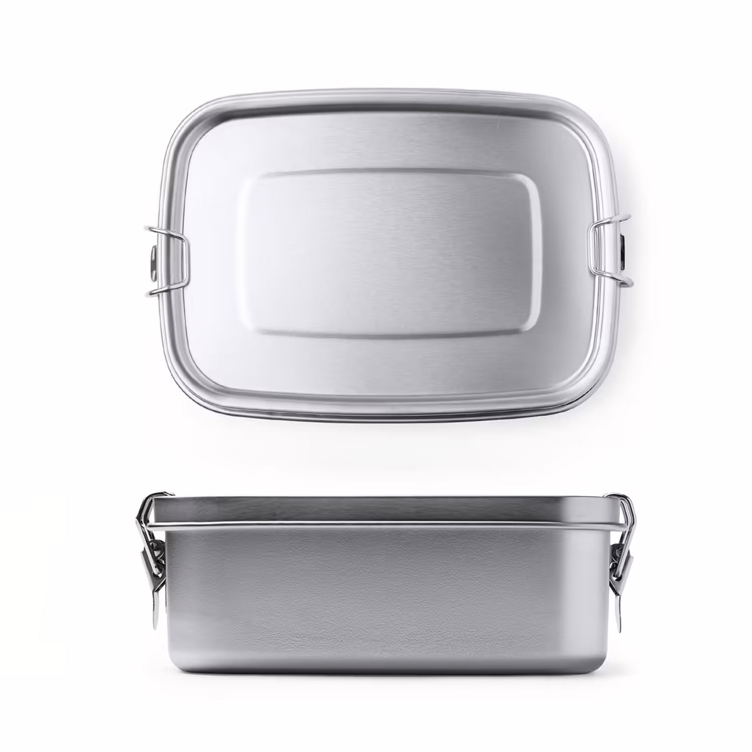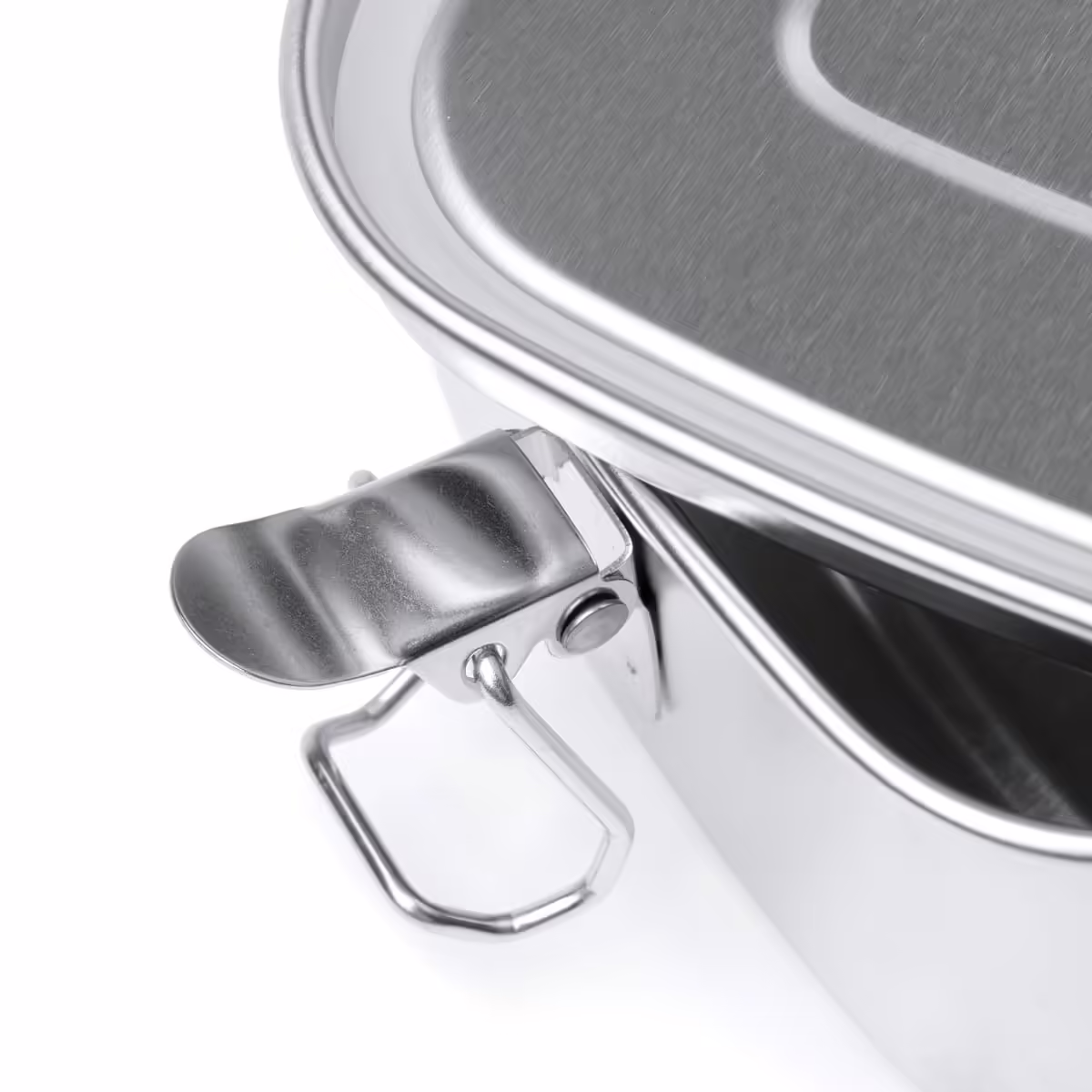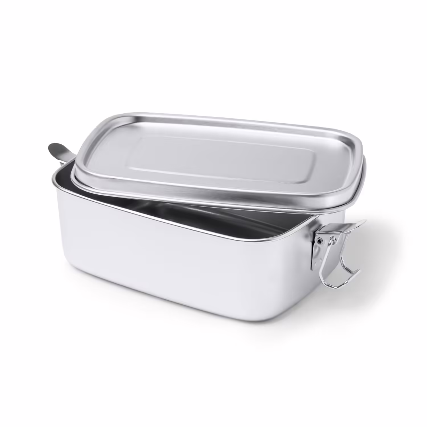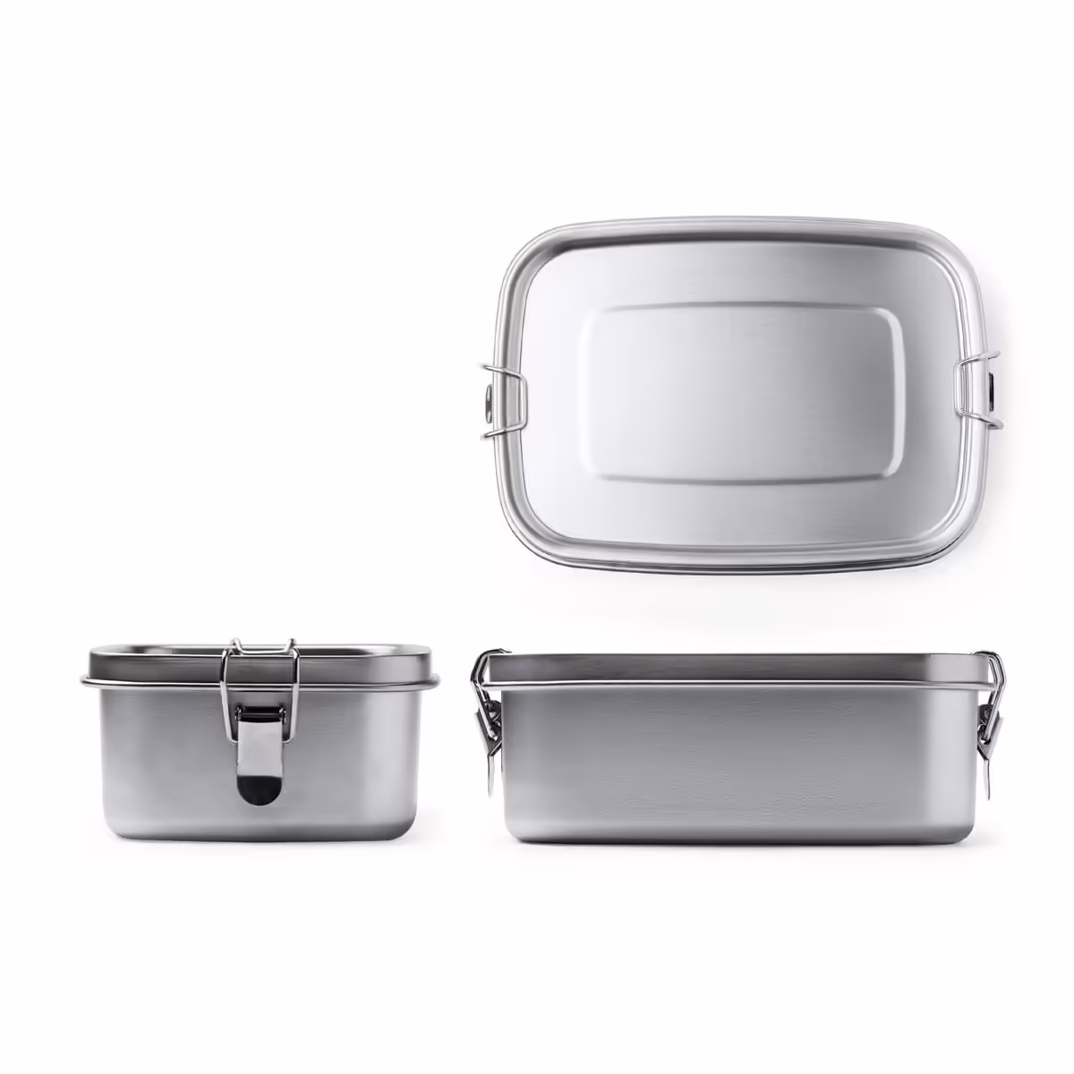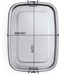 Fiambrera de acero inoxidable 304 con sistema de cierre mediante hebillas laterales. Capacidad 1L.