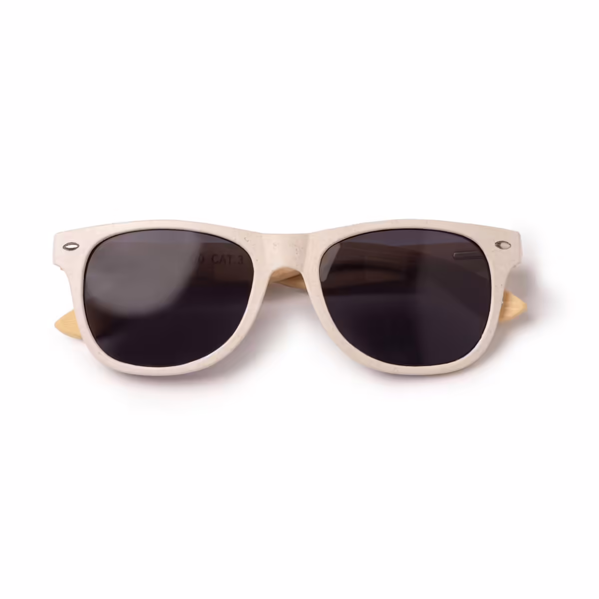 Gafas de sol con montura realizada en en fibra de trigo y patillas de bambú. Lentes con protección UV400.