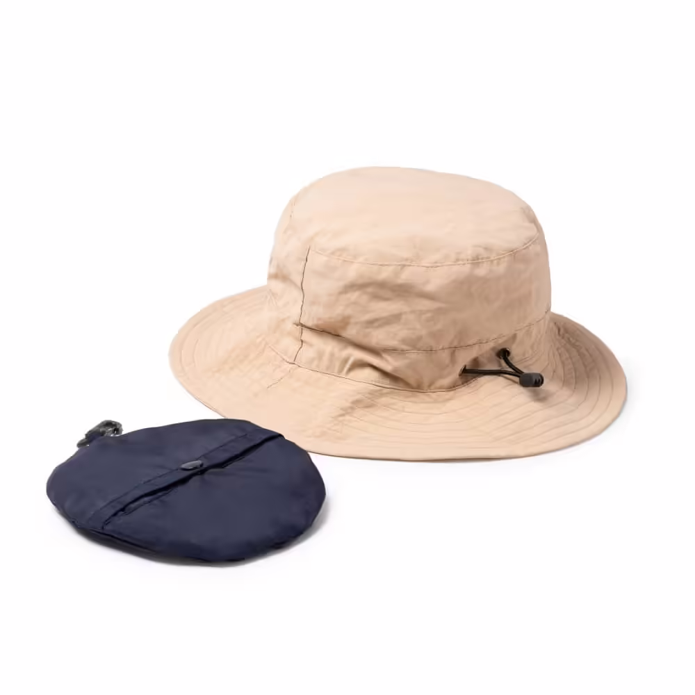 Gorro deportivo resistente al agua realizado en microfibra. Bolsillo para guardar. Incluye mosquetón.