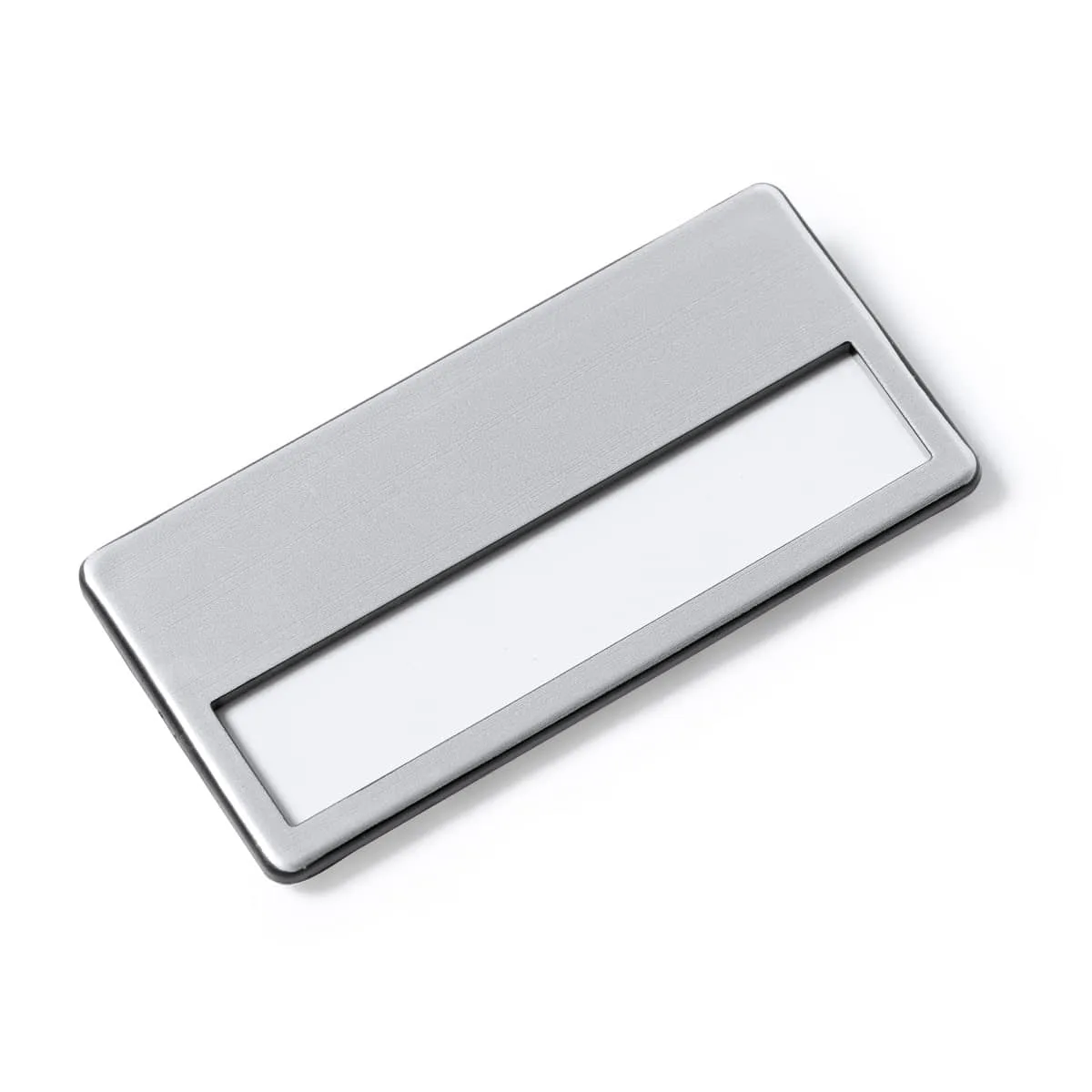 Identificador con frontal de aluminio. Doble sistema de fijación.