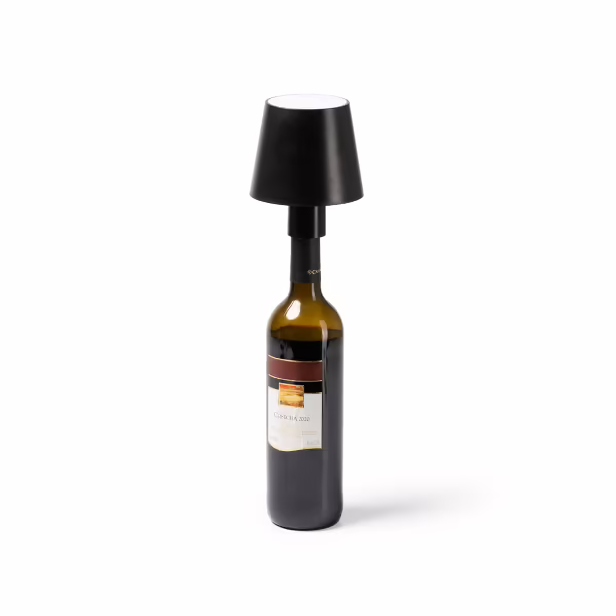 Lámpara para botellas con 3 modos de luz led: blanca, neutra y cálida. 800 mAh. Sistema de regulación táctil. Incluye cable tipo C.