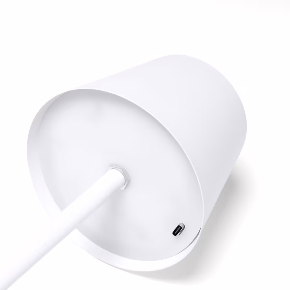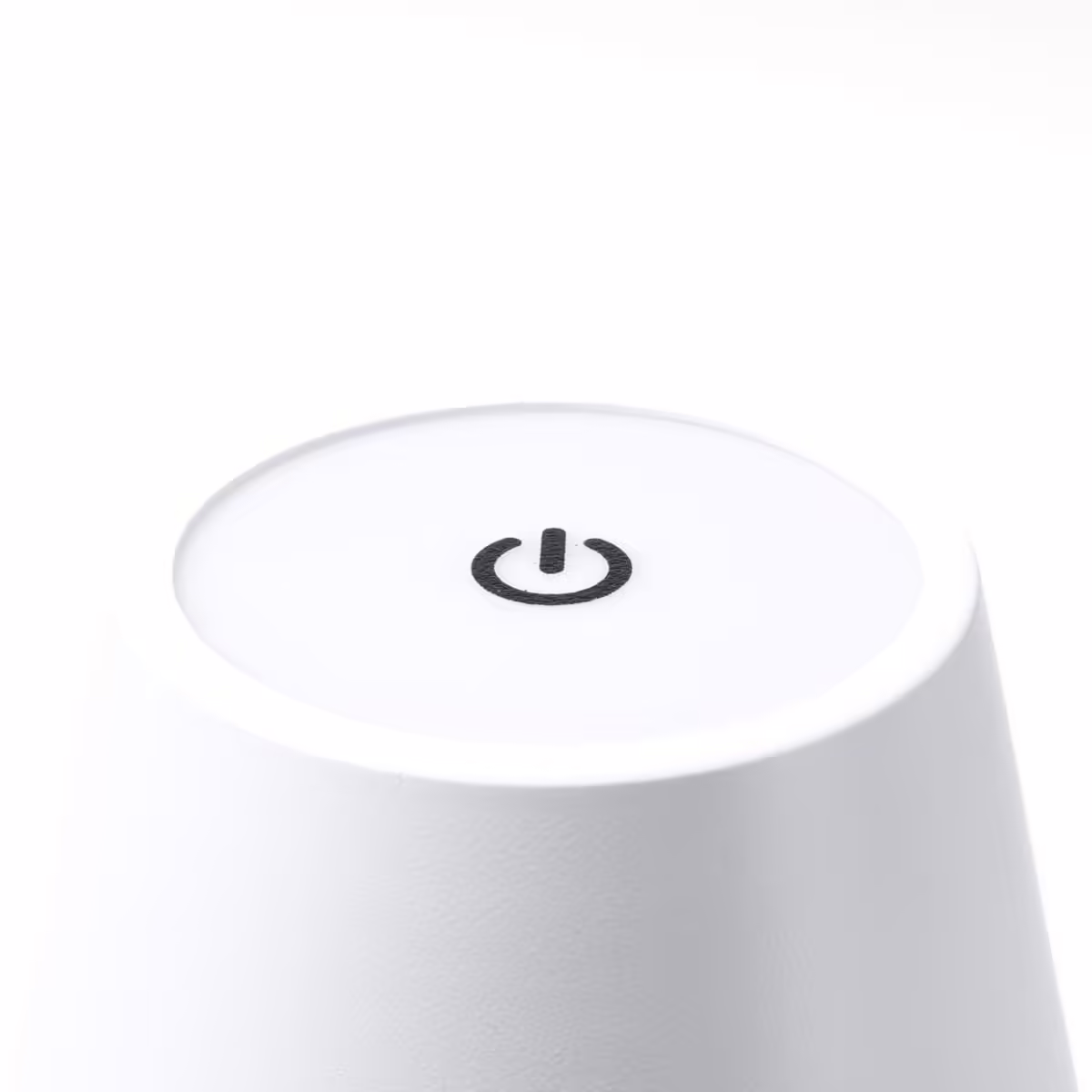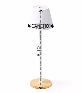 Lámpara con cuerpo metálico y base de bambú. 3 modos de luz led: blanca, neutra y cálida. Sistema de regulación táctil. 1200 mAh. Incluye cable tipo C. Base con goma antideslizante.