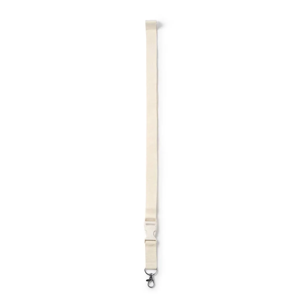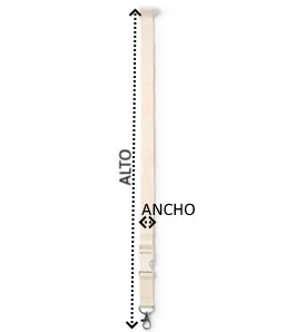 Lanyard de algodón con mosquetón, hebilla y cierre de seguridad.