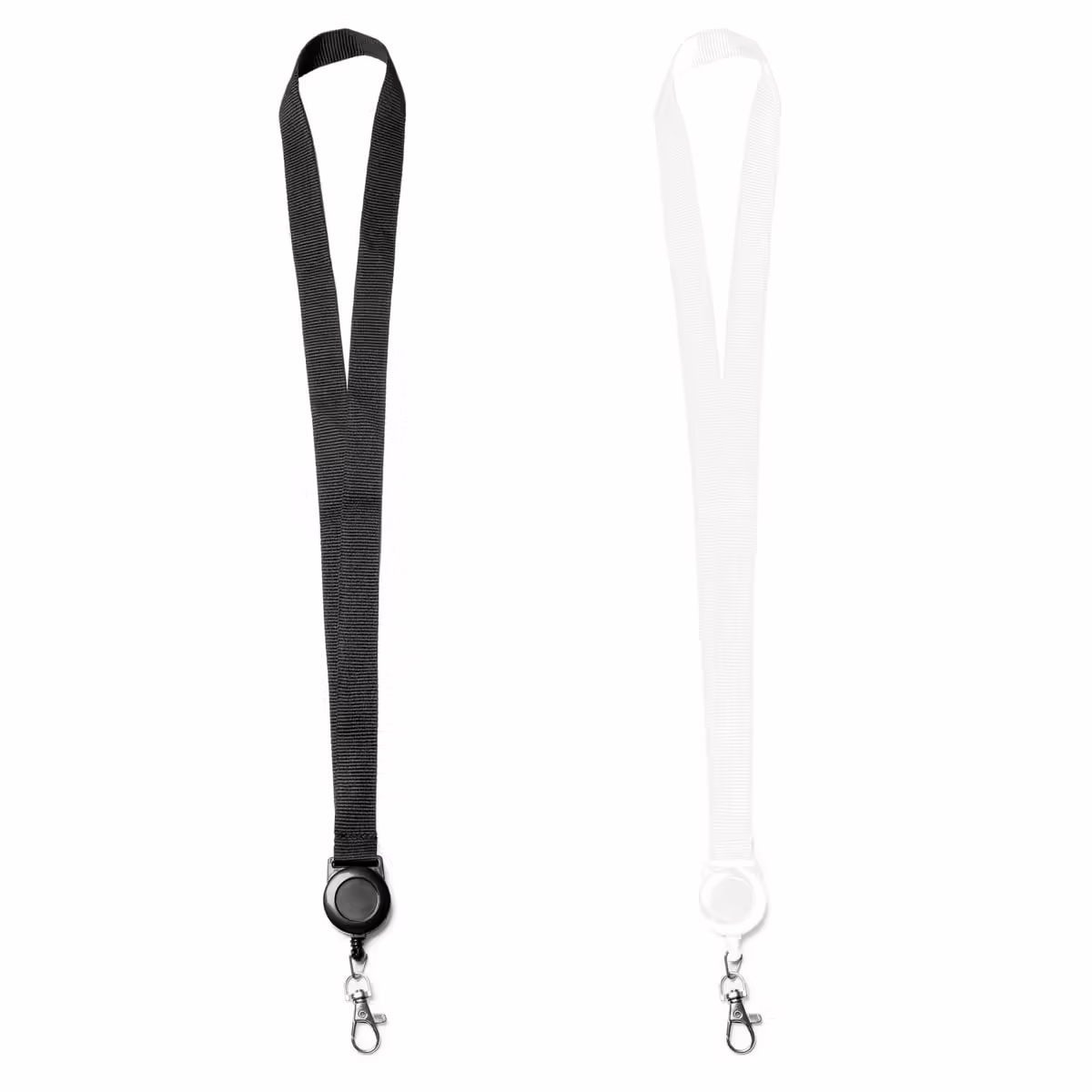 Lanyard con accesorio retráctil extensible. Incluye mosquetón.