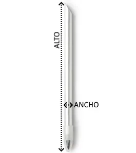Lápiz con cuerpo de aluminio. Punta de grafito de escritura infinita intercambiable. No es necesario sacarle punta.
