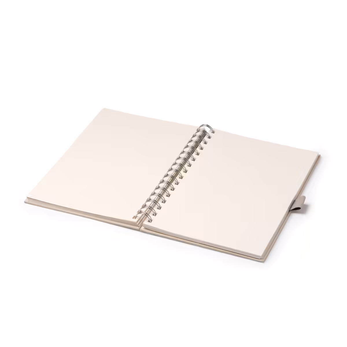 Libreta A5 realizada en cartón reciclado de briks de leche. Tapa rígida. 70 hojas lisas realizadas en papel de briks de leche. Presentación en funda de cartón con diseño eco.