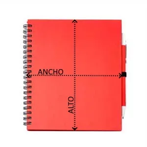 Libreta con espiral, compuesta por 70 hojas de papel liso y soporte para bolígrafo. Tapas rígidas y bolígrafo de cartón reciclado a juego.