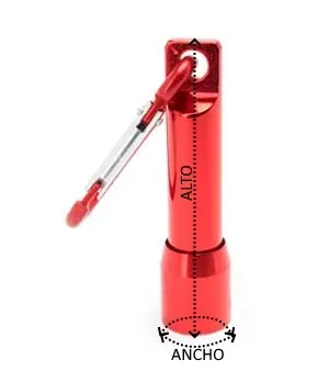 Linterna con 1 luz LED a pilas. Disponible en varios colores metalizados con mosquetón de transporte a juego.