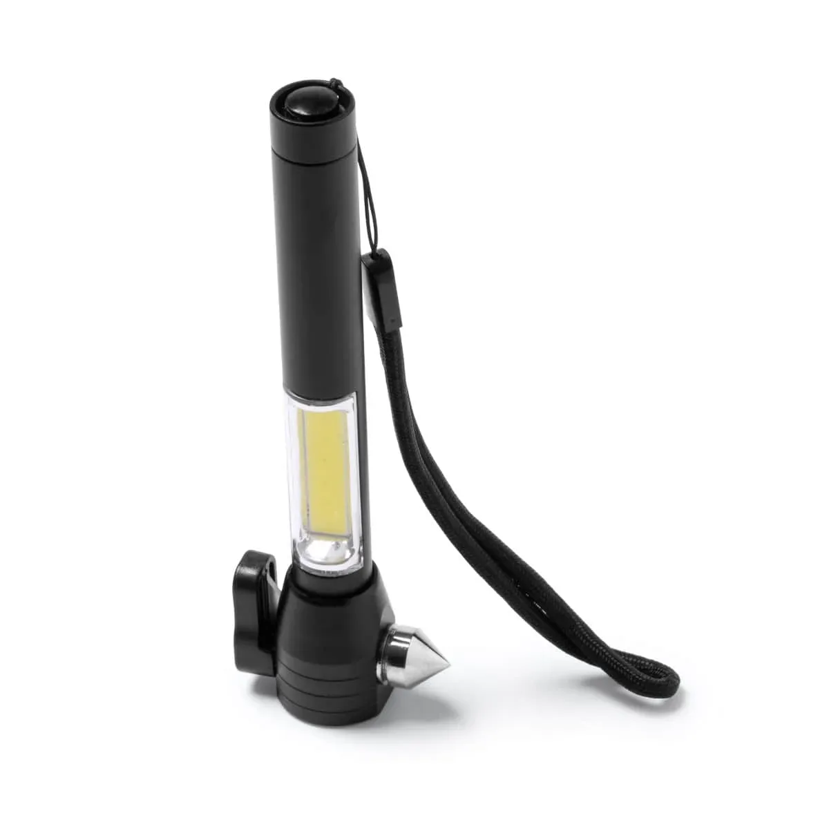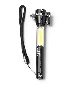 Linterna multiusos de aluminio con función martillo, rompecristales y cuchilla corta cinturones. Pila AAA incluida.