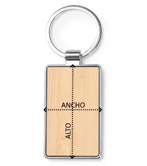 El diseño rectangular o circular del llavero ofrece una forma clásica y atemporal, mientras que el acabado de metal agrega un toque de sofisticación. El contraste entre el bambú y el metal crea una combinación armoniosa y llamativa.
