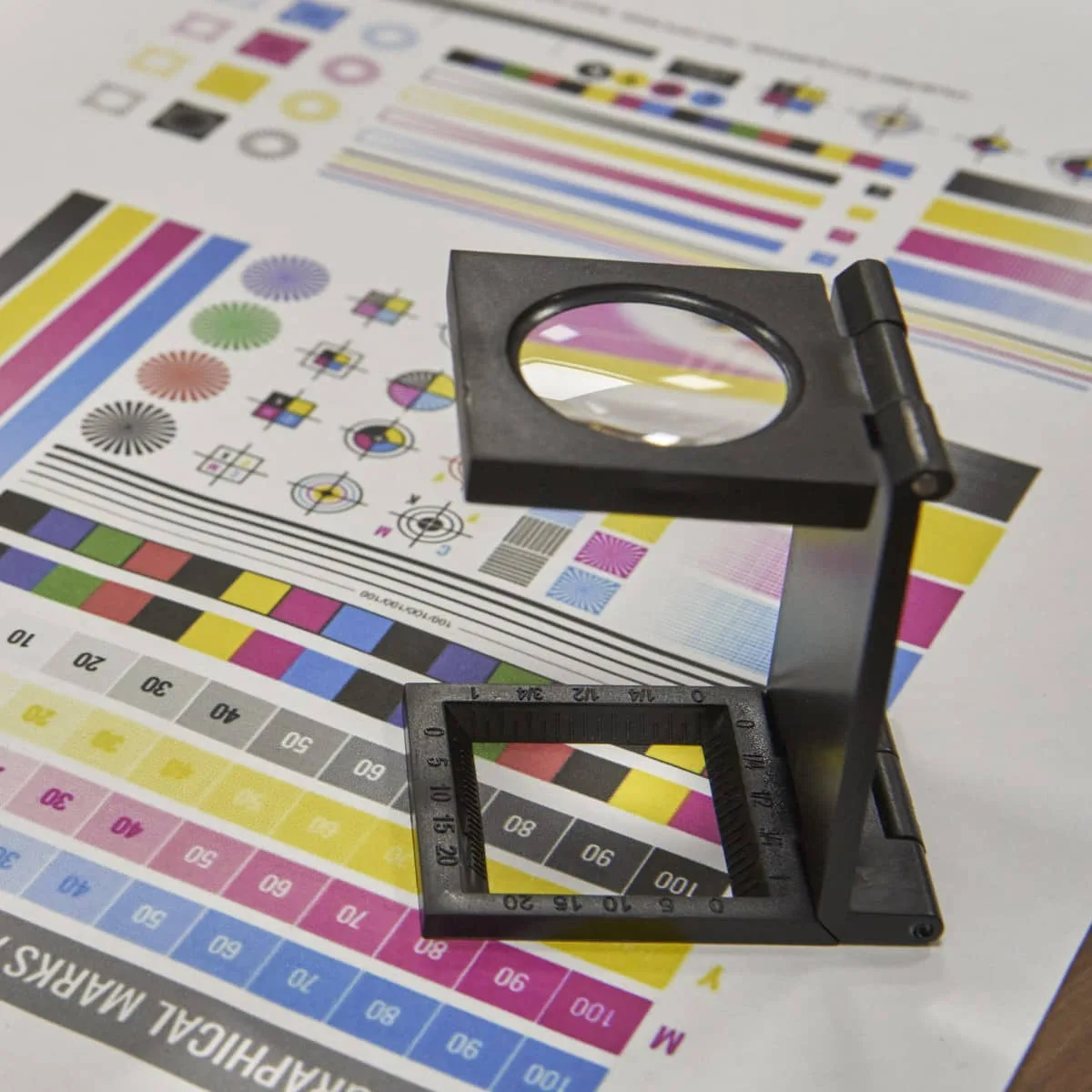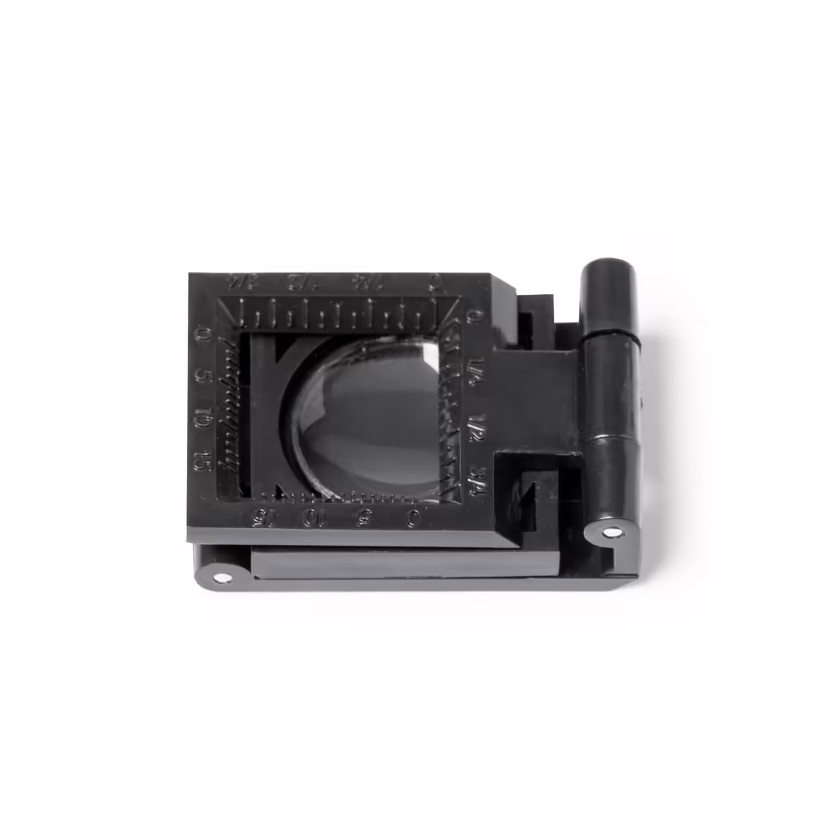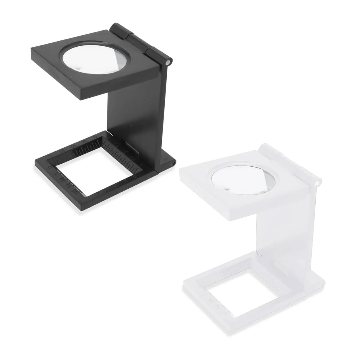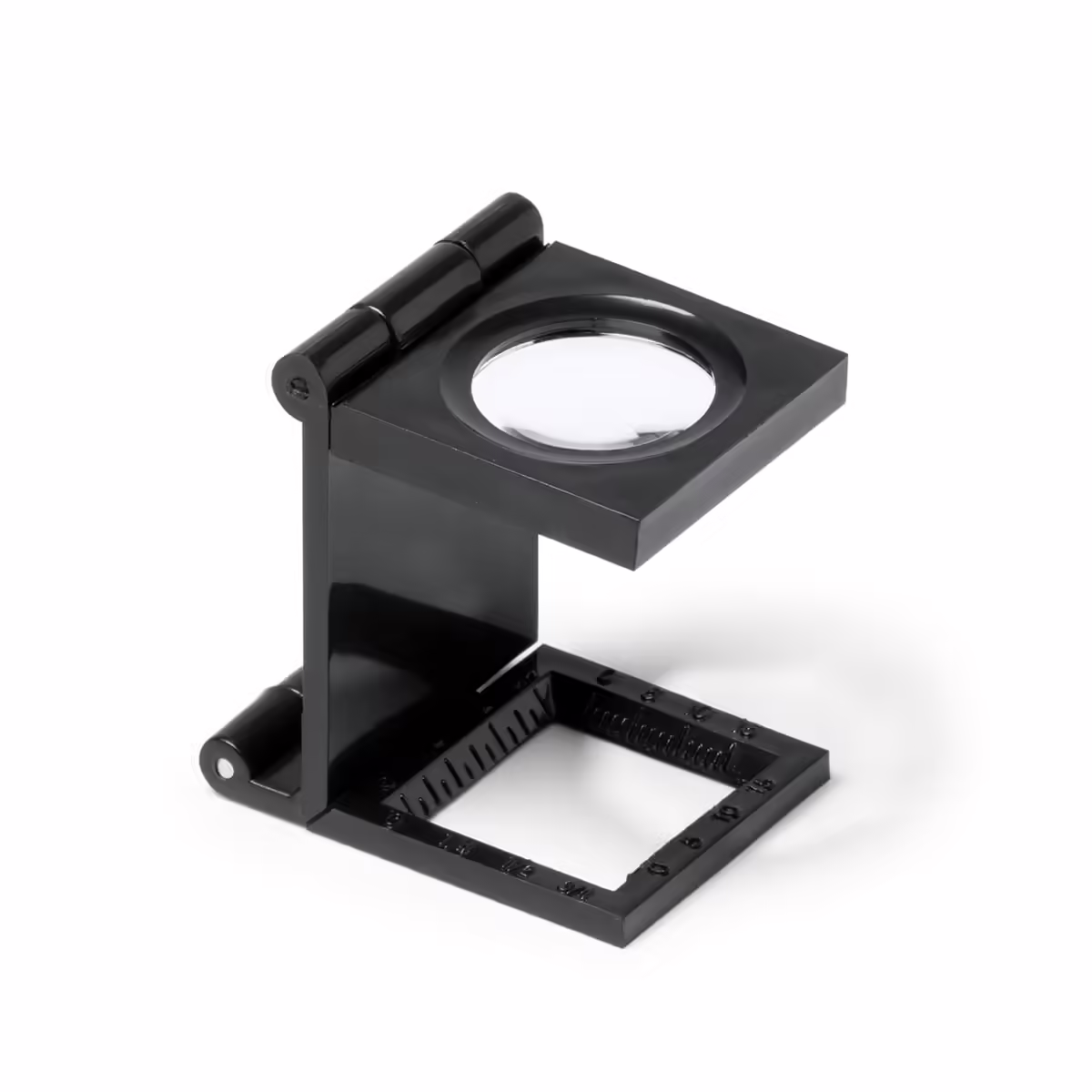 Lupa cuentahilos plegable de 7 aumentos. Con regla de medición integrada en el cuerpo. Presentación en caja individual.
