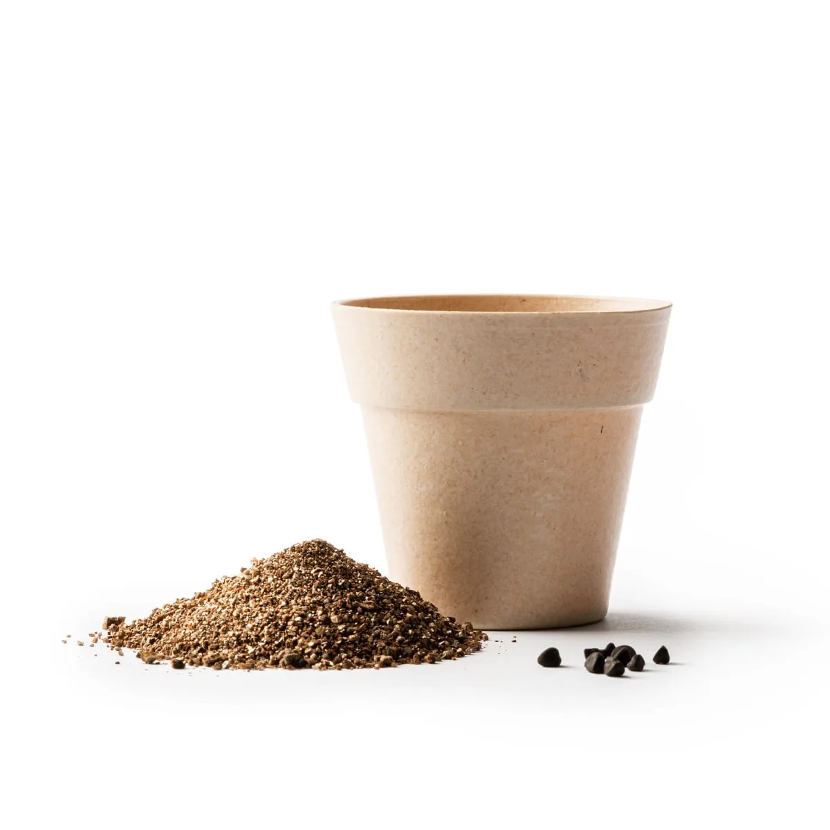 Maceta con semillas de petunia. Incluye una maceta biodegradable y una bolsa de sustrato para realizar su perfecto crecimiento.