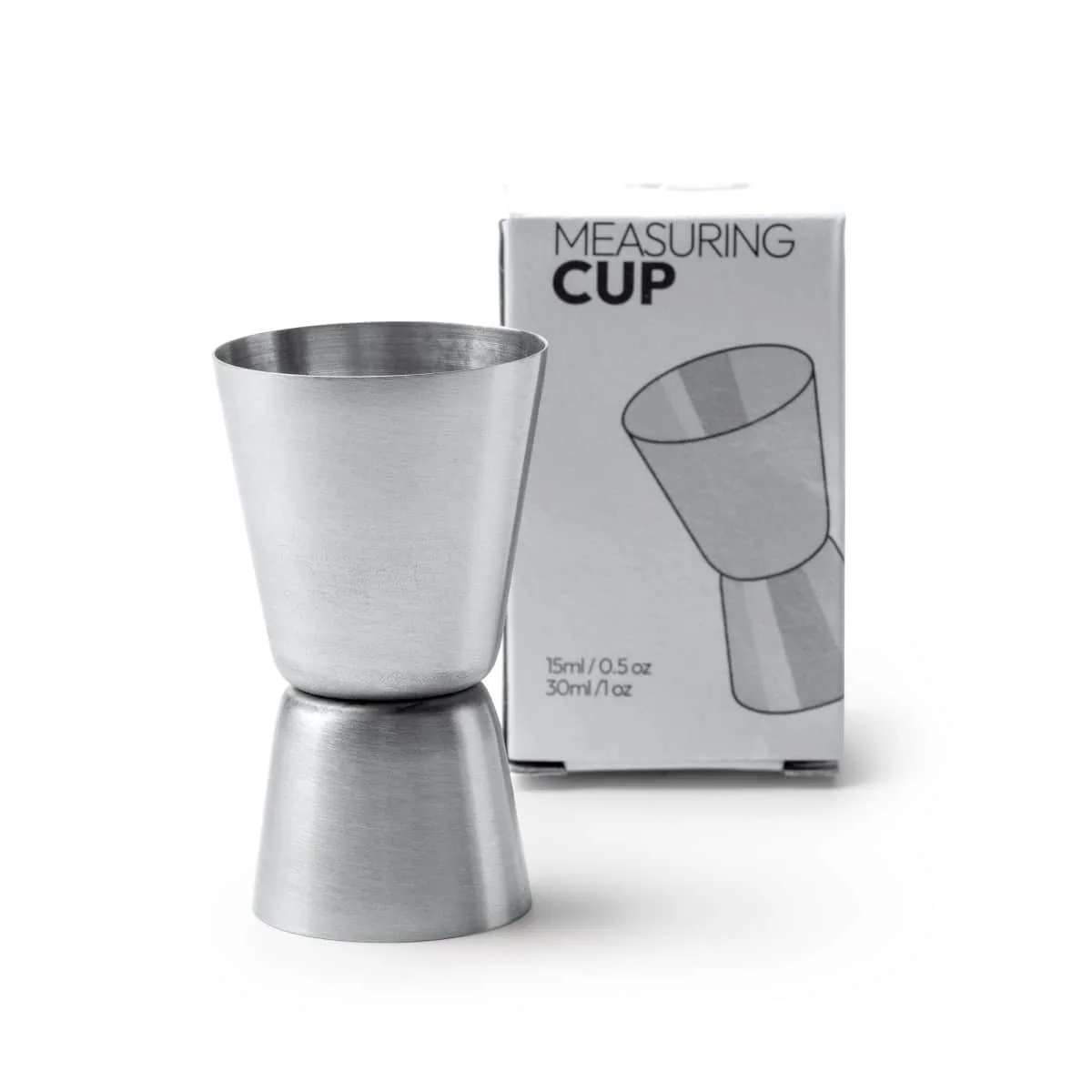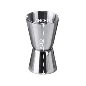 Medidor para bebidas de acero inoxidable. Medidas 15 y 30 ml de capacidad.