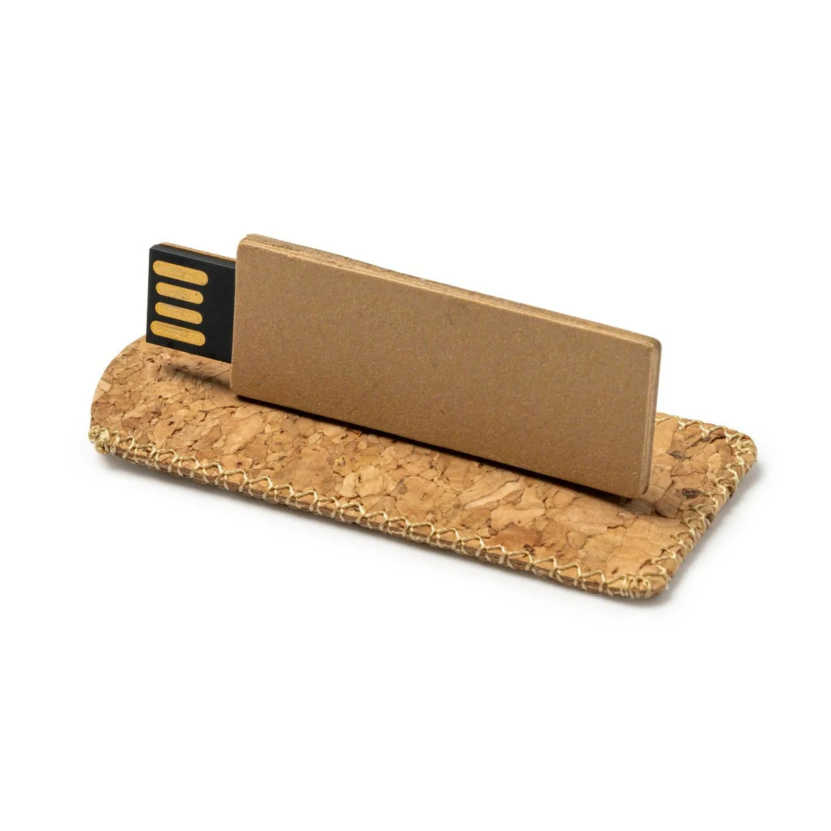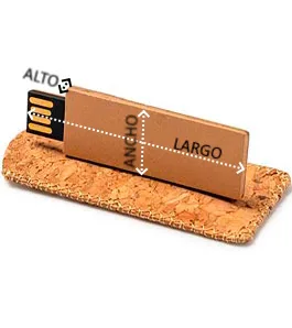 Memoria USB realizada con cartón reciclado, incluye una funda de corcho natural. Cuenta con una capacidad de 16 GB.