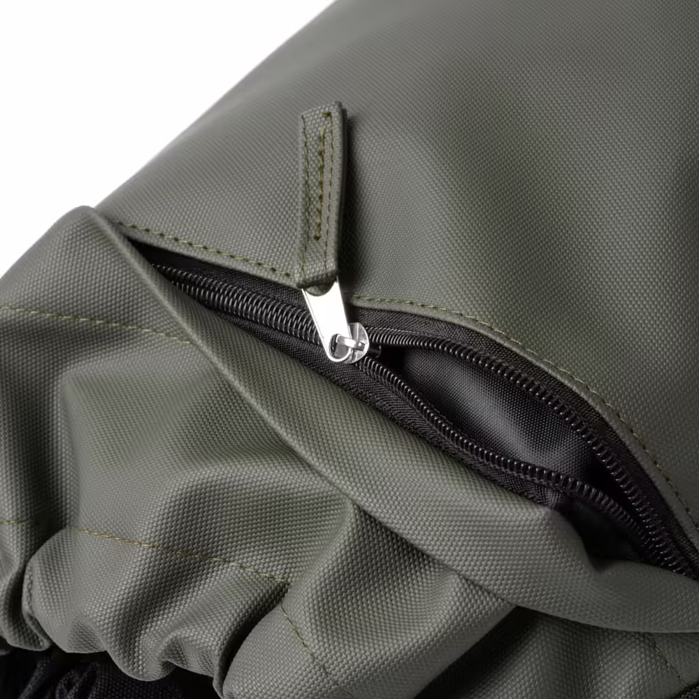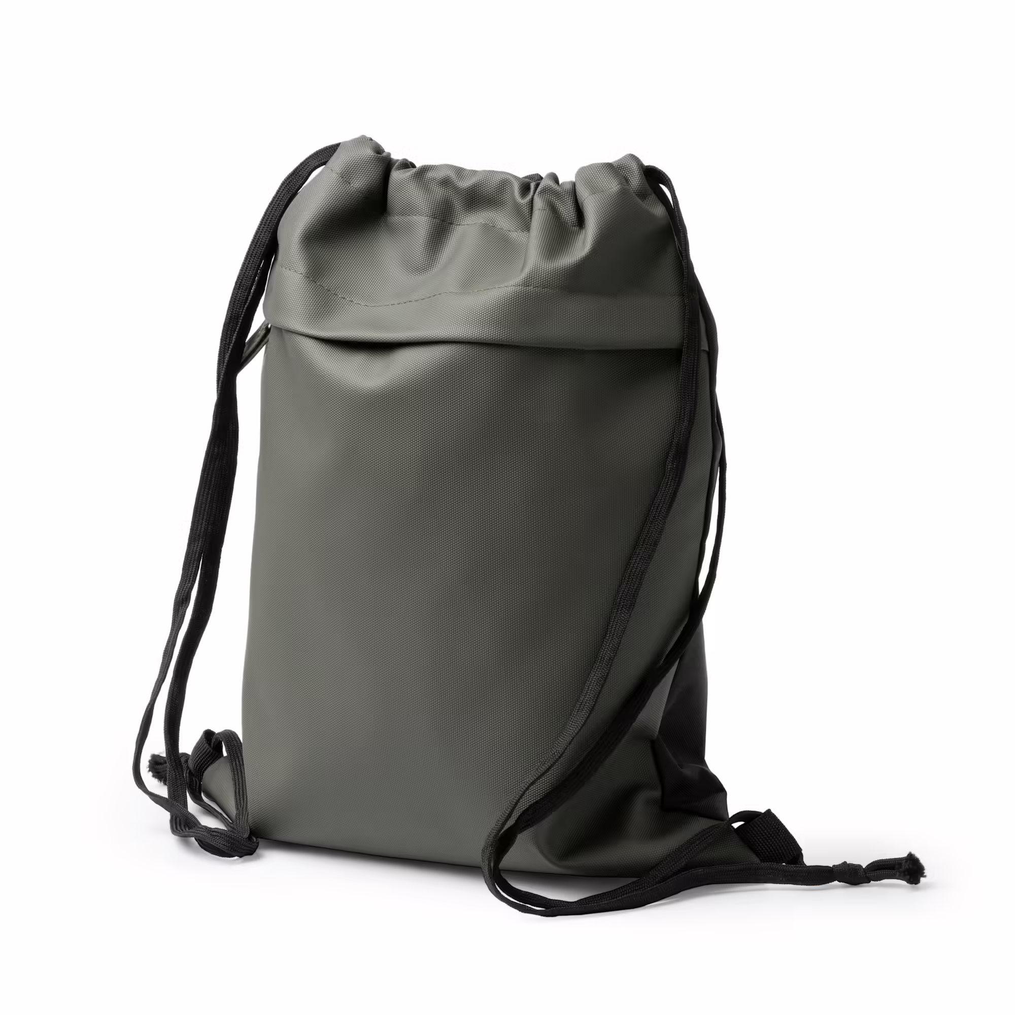 Mochila de cuerdas realizada en PU Leather y poliéster 600D. Práctico bolsillo frontal con cierre de cremallera.