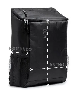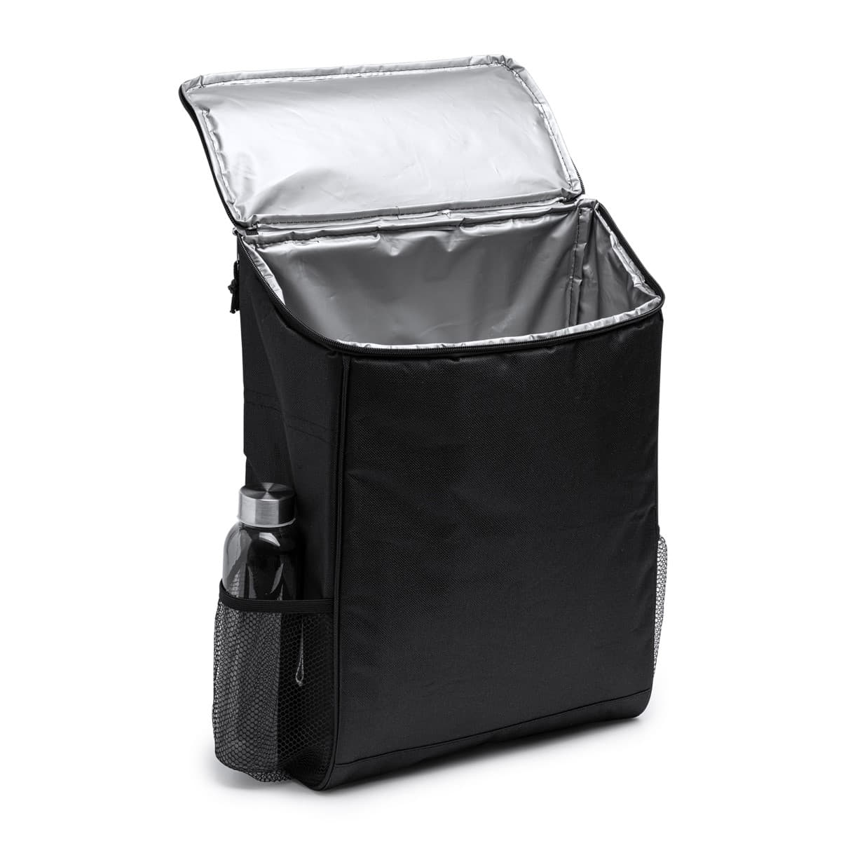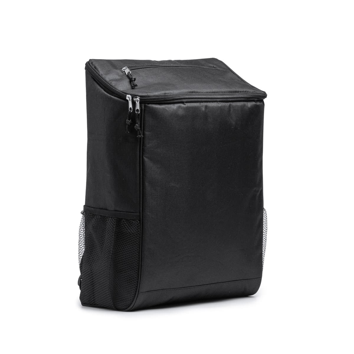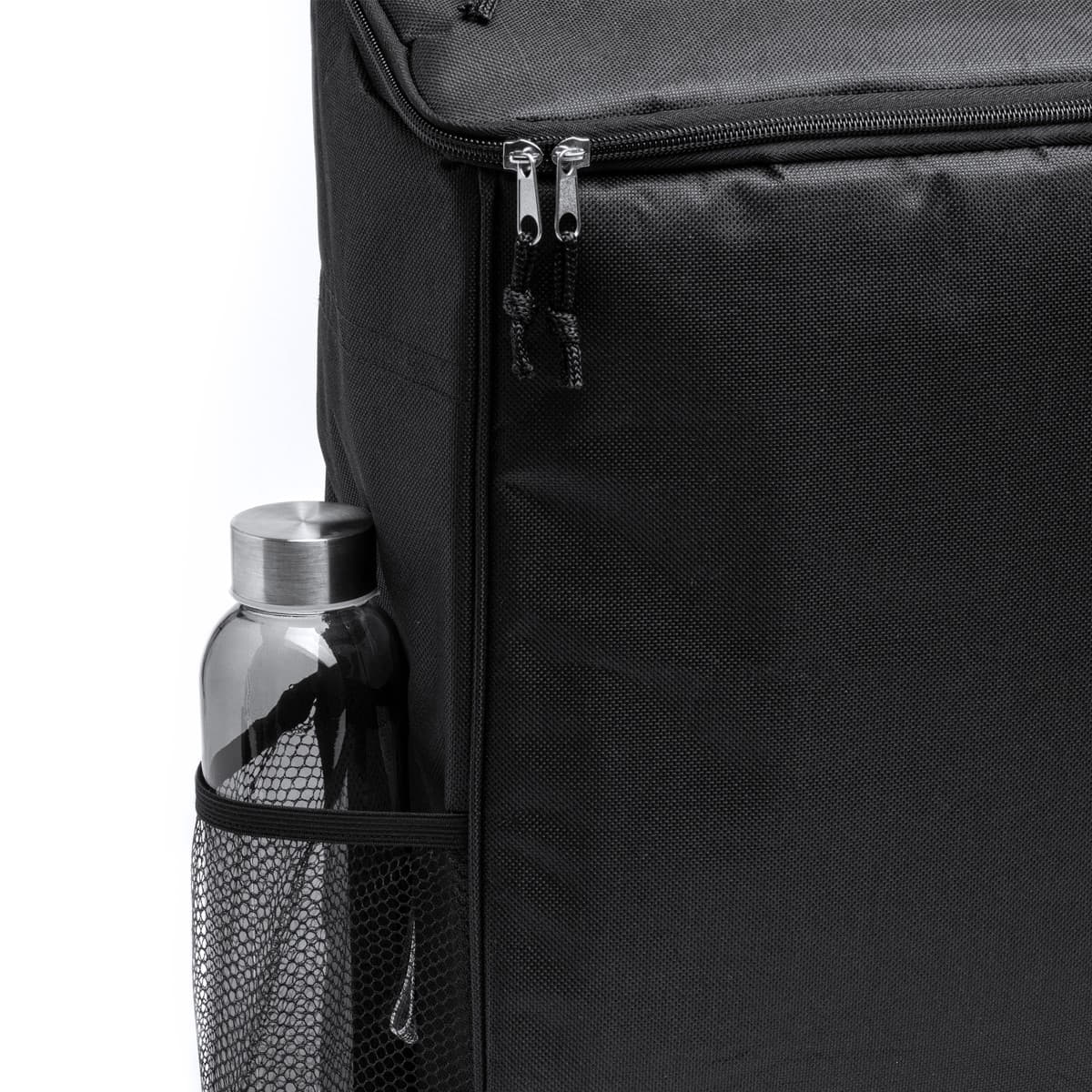 Mochila nevera realizada en RPET idónea para mantener tu bebida o comida en buena temperatura. Bolsillo principal con interior isotérmico y bolsillo en la solapa. Bolsillos laterales de rejilla. Capacidad 19L. Espalda y tiras acolchadas.
