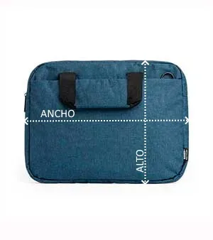 Portadocumentos acolchado para portátil realizado en poliéster reciclado RPET 600D con diseño vigoré. Dos compartimentos con cremallera impermeable. Asas de transporte y cinta bandolera ajustable a juego. Incluye cinta para trolley.