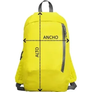 Mochila multiusos de dimensiones 23x40X12 cm. Asa superior para colgar. Bolsillo frontal con cremallera vertical. Muy ligera y compacta.