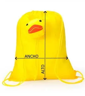Mochila infantil de cuerdas plegable en poliéster 190T. Bolsillo para plegado con diseños de animales.
