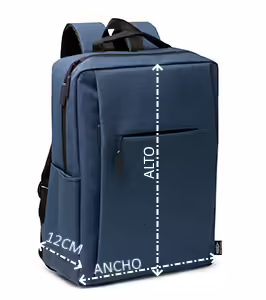 Mochila realizada en 600D RPET con acabado jaspeado. Gran compartimento interior con bolsillo para portátil de 15″. Bolsillo exterior con cierre de cremallera y bolsillo lateral. Asas acolchadas. Cinta para trolley. Capacidad de 14L.