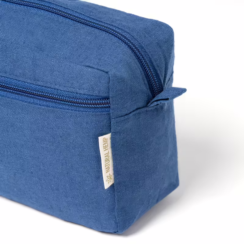 Neceser multiusos realizado en tela de cáñamo 200 g/m². Compartimento principal y bolsillo frontal con cierre de cremallera y tirador a juego. Idóneo complemento para llevártelo de viaje.