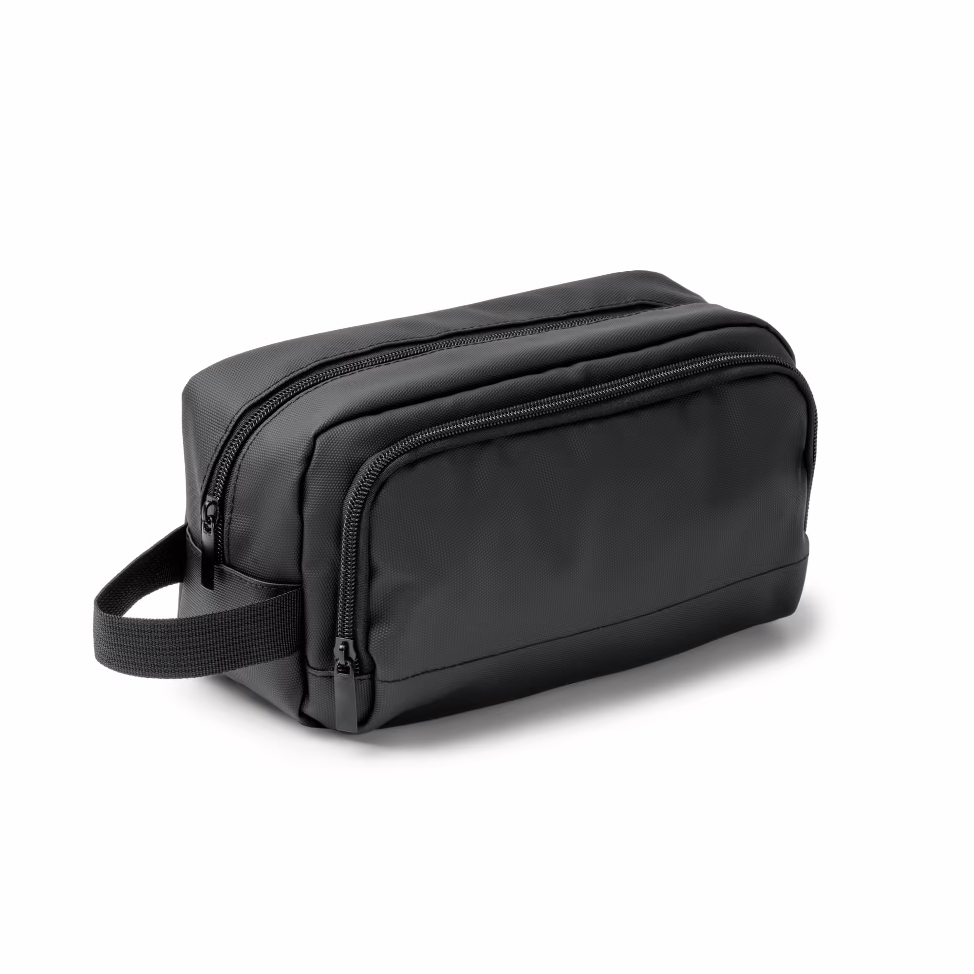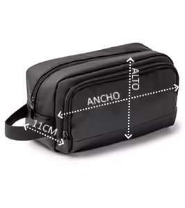 Neceser de PU Leather con doble compartimento y cierre de cremallera, ideal para organizar artículos de aseo personal de manera segura y elegante. Incluye asa de transporte.