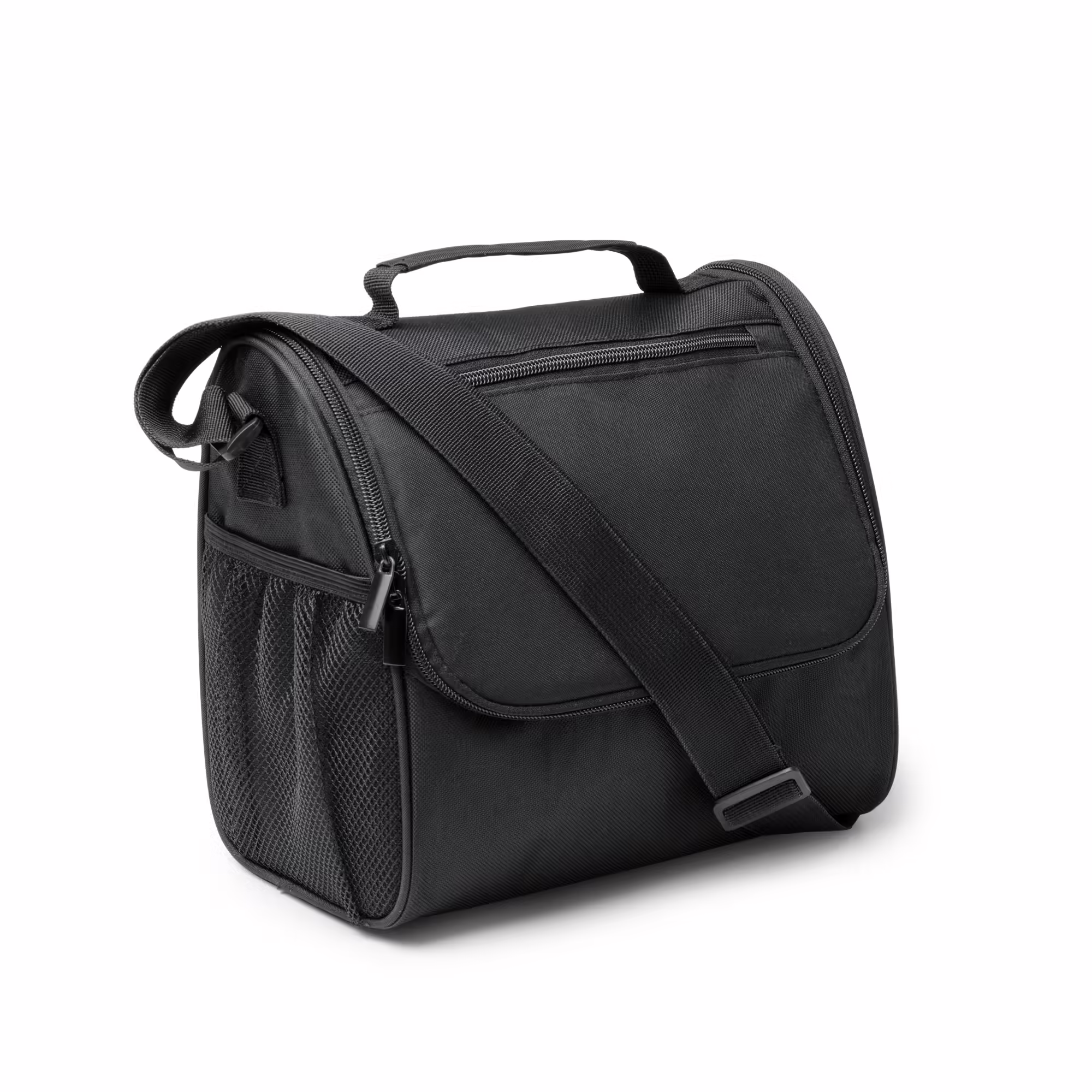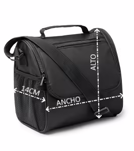 Nevera realizada en 600D RPET. Bolsillo principal con interior isotérmico. Práctico bolsillo frontal con cierre de cremallera y 2 bolsillos laterales. Cinta de transporte ajustable.