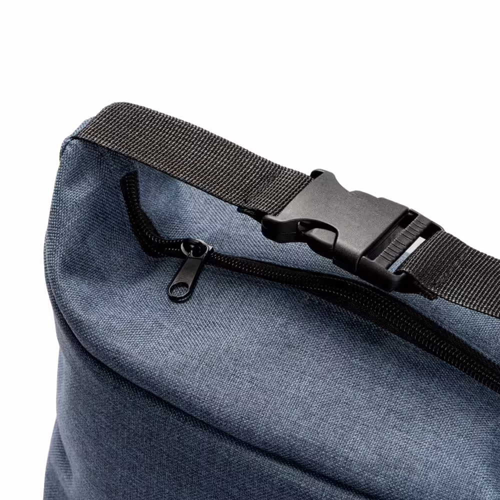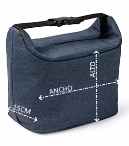 Nevera realizada en 600D RPET. Original diseño con cierre en buckle que permite un transporte fácil. Compartimento interior isotérmico.