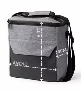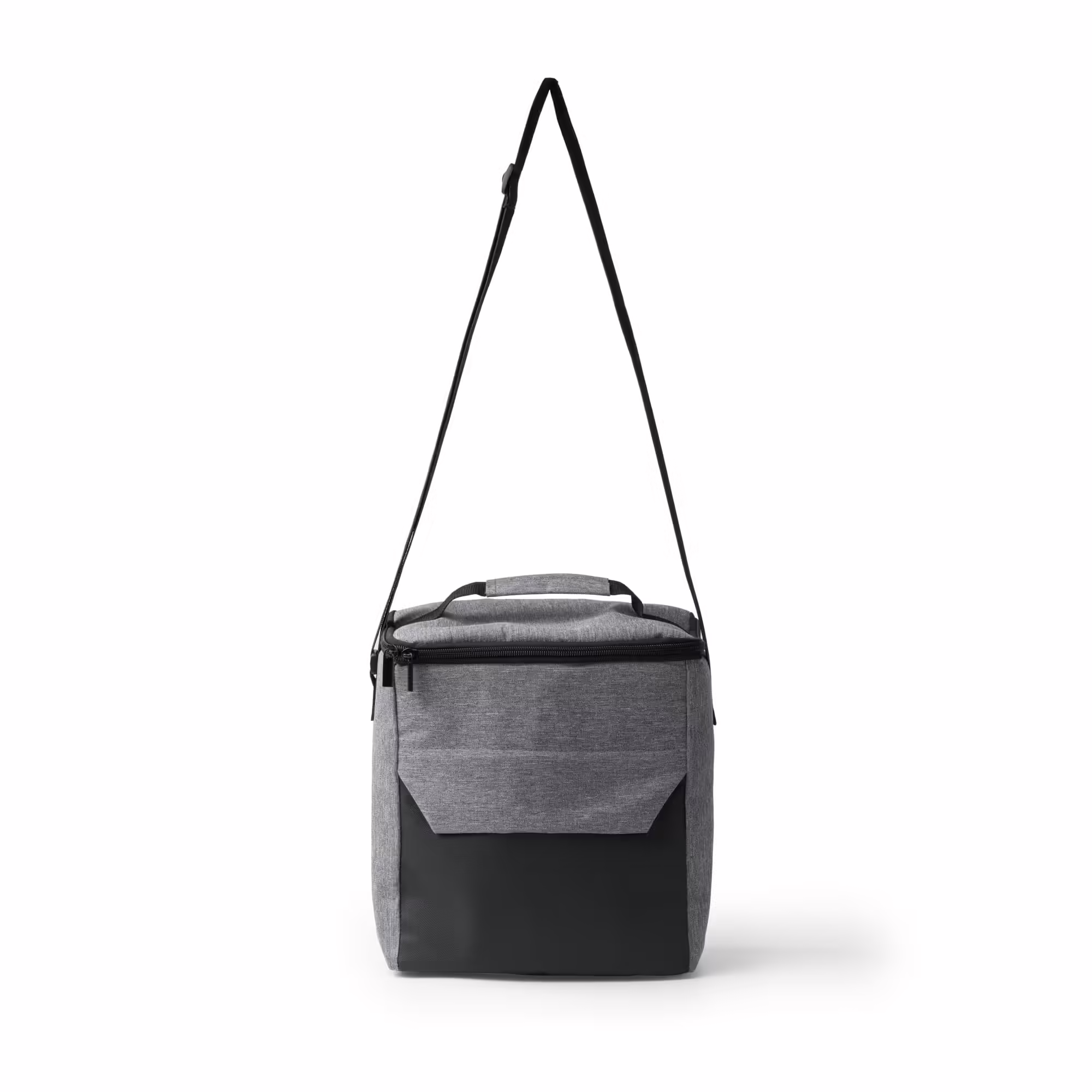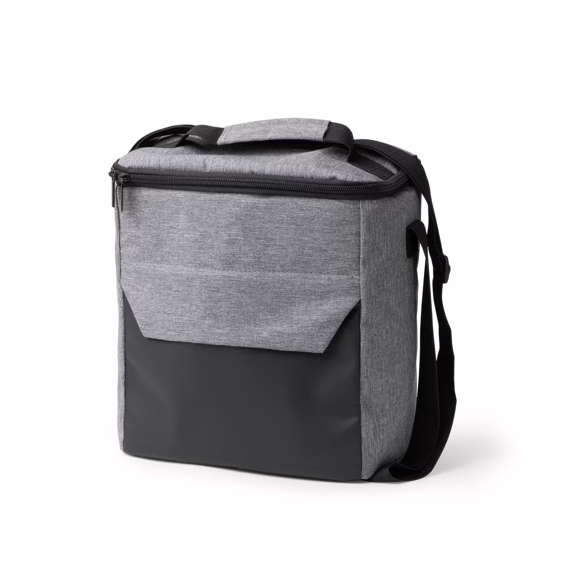 Nevera realizada en PU Leather y 300D RPET con interior isotérmico. Gran compartimento principal y bolsillo exterior con cierre de cremallera. Asa con refuerzo y cinta de transporte ajustable.
