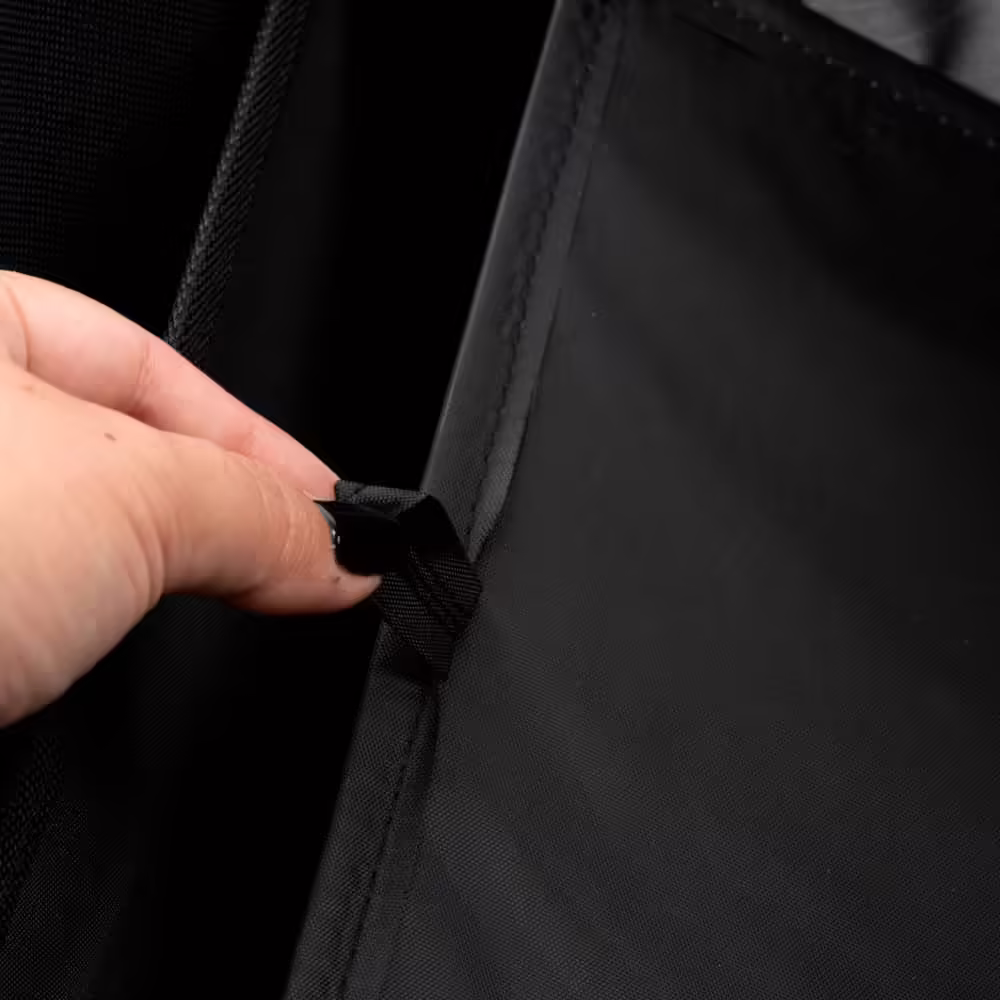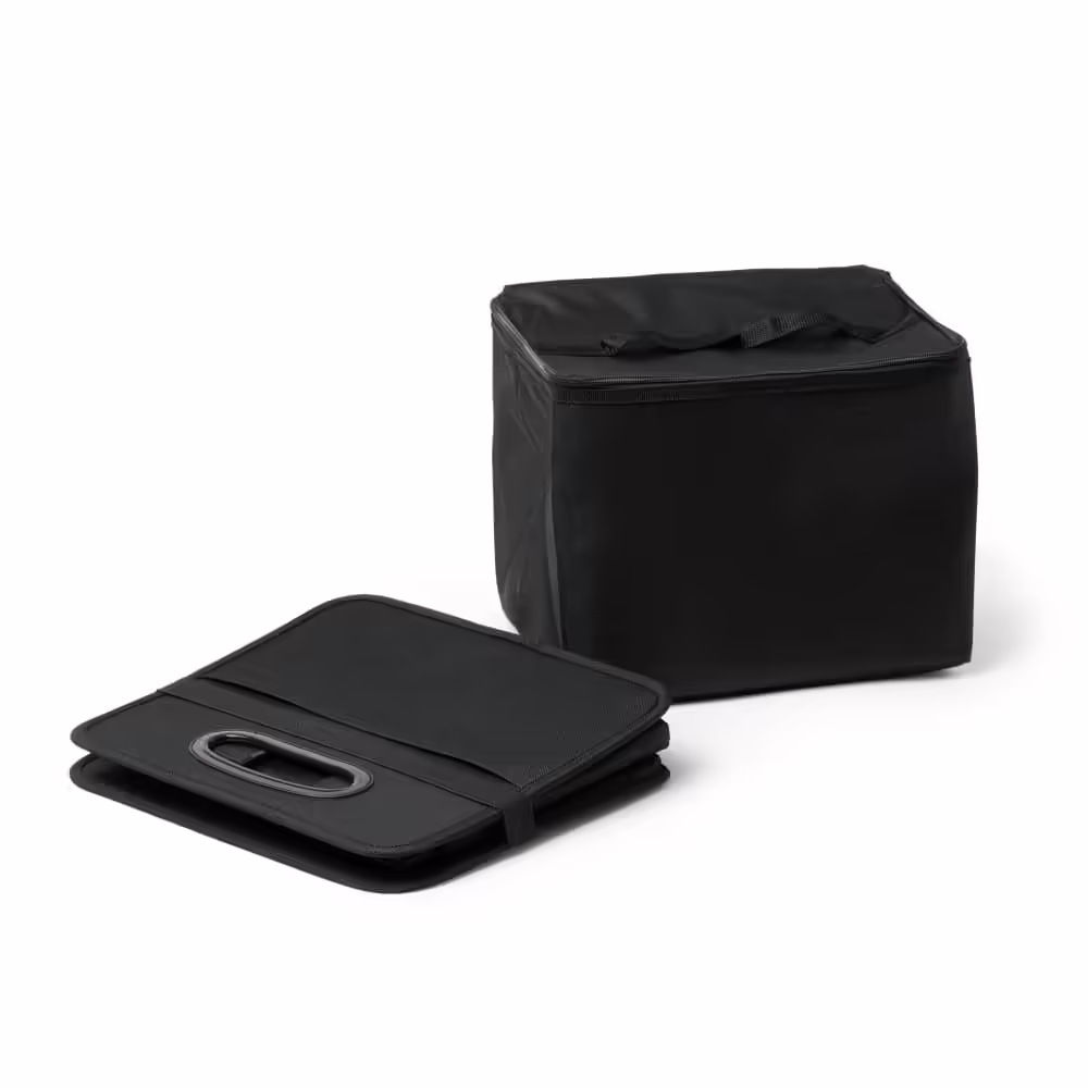Organizador de maletero plegable con asas reforzadas. Realizado en poliéster 600D. 2 compartimentos principales y bolsillo exterior. Incluye nevera extraíble de 12L con interior isotérmico.