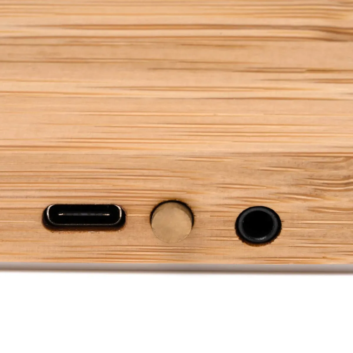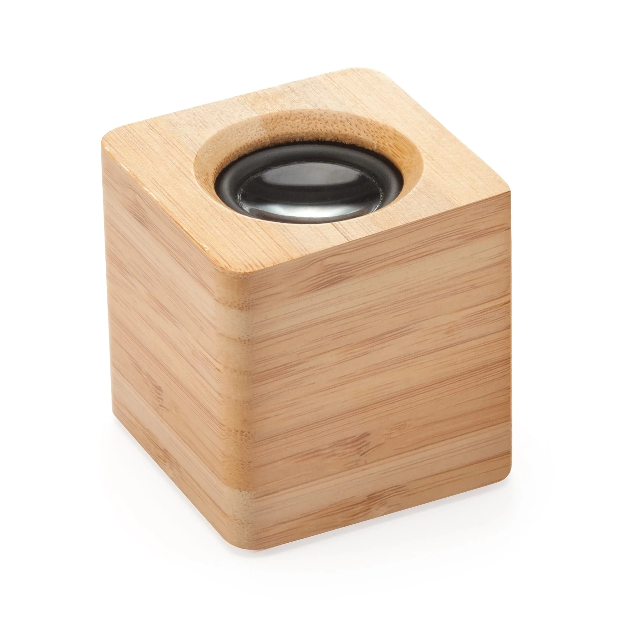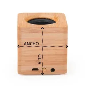 PRODUCTO QUE SE DESCATALOGARÁ EN 2025 – Fantástico Altavoz inalámbrico con cuerpo de bambú y membrana visible. Ideal para marcaje en láser. Bluetooth 3.0, 3W de potencia y batería recargable. Cable incluido.