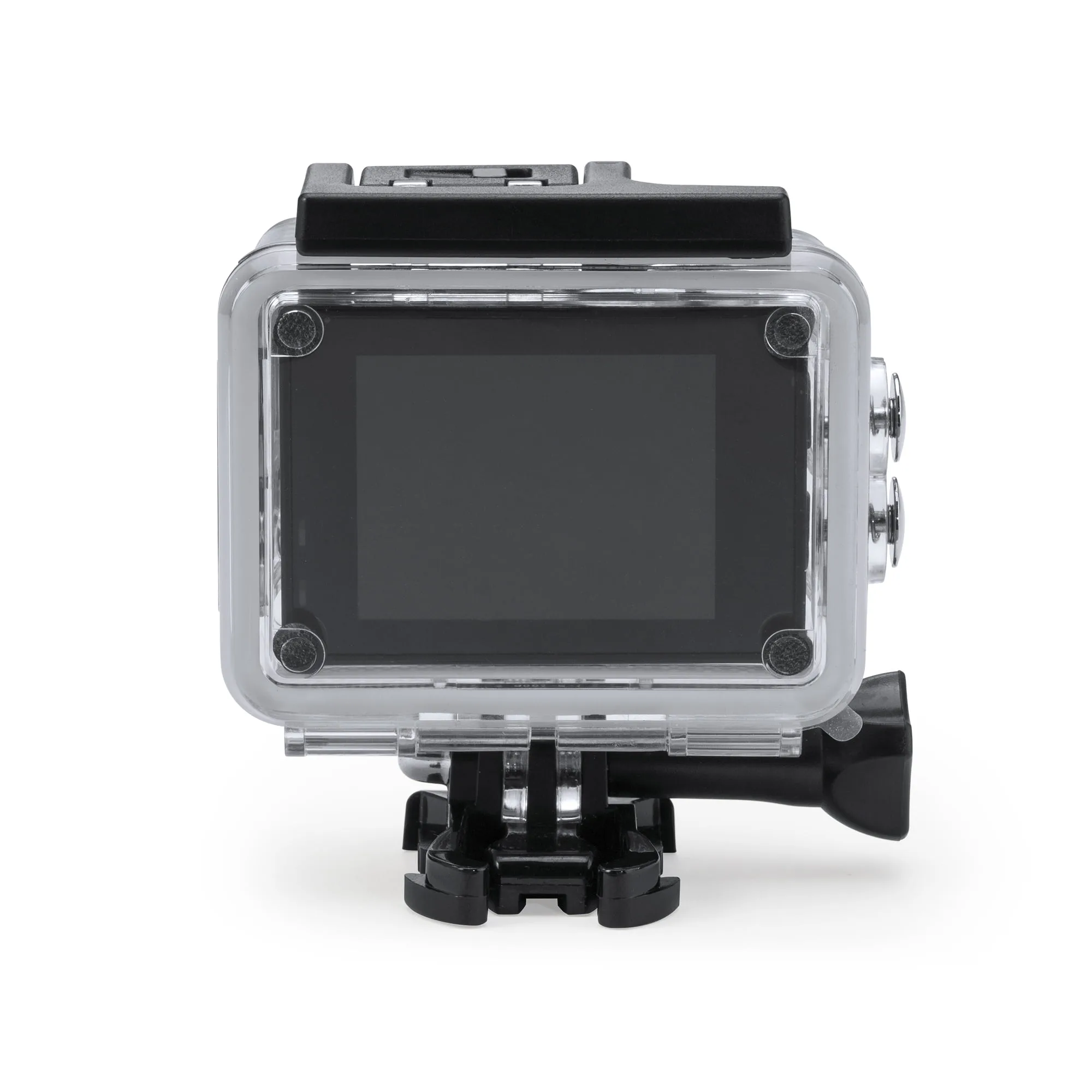 Cámara deportiva con tecnología de vídeo HD 4K y conexión Wi-Fi. Pantalla LCD 2″. Con función cámara de fotos Full HD 1080P. Incluye resistente carcasa sumergible hasta 30m y diversos accesorios de acople multifunción. Batería extraible recargable. Cable incluido. Presentación en caja diseño.
