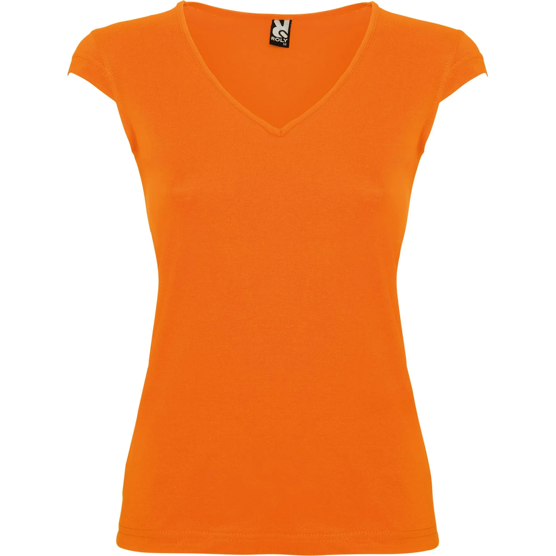 Camiseta de manga corta, con escote en V y acabados realizados con ribete fino. Costuras laterales. Corte entallado.