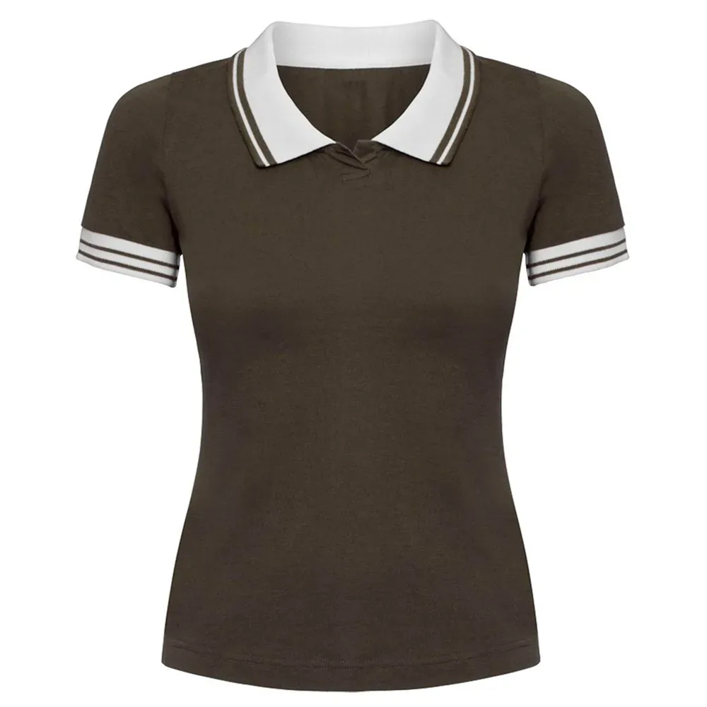 Polo de manga corta entallado. . Minitapeta sin botones. Cuello y bocamangas en tricotosa combinados. Aberturas laterales con trasero mas largo. Costuras laterales.