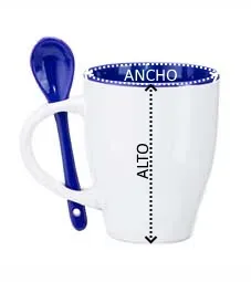 Taza de cerámica de 350ml. Interior y cuchara a color. Presentación en caja blanca.