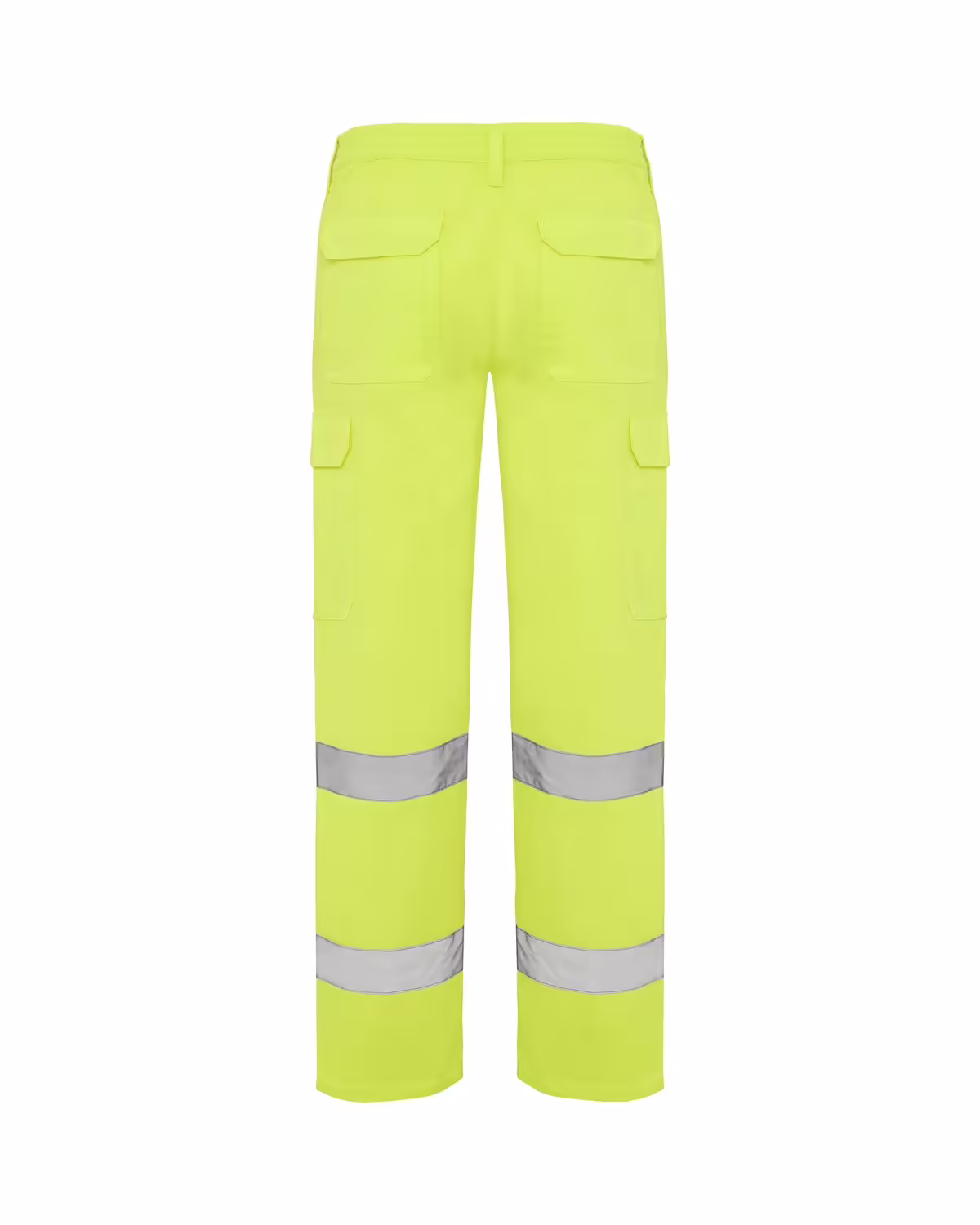 Pantalón largo de alta visibilidad amarillo flúor. 1.- Cinturilla ajustable elástica en la parte trasera. 2.- Dos bolsillos frontales. 3.- Bolsillo funcional trasero con tapeta y cierre de velcro. 4.- Dos bolsillos laterales con fuelle y tapeta con cierre de velcro. 5.- Dos cintas reflectantes horizontales. Con ALFA de Roly podrás realizar tu trabajo con la mayor seguridad posible. Con cinturilla elástica en la parte trasera, bolsillos exteriores con y sin velcro, y dos cintas reflectantes horizontales.