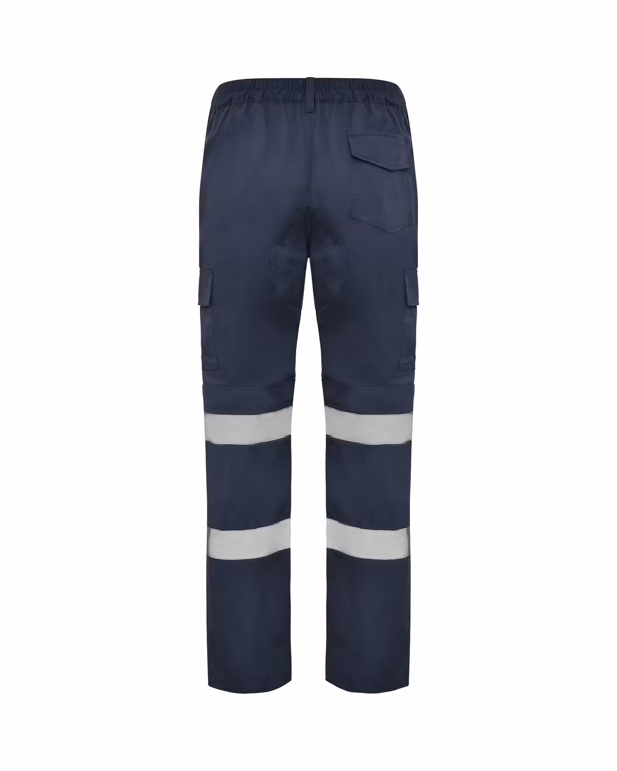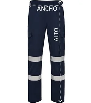 Pantalón largo de visibilidad nocturna con tejido resistente. · Cinturilla ajustable elástica en la parte trasera. · Dos bolsillos frontales. · Bolsillo funcional trasero con tapeta y cierre de velcro. · Dos bolsillos laterales con tapeta y cierre de velcro. · Refuerzo en entrepierna · Doble tejido en rodilleras. · Dos cintas reflectantes horizontales.