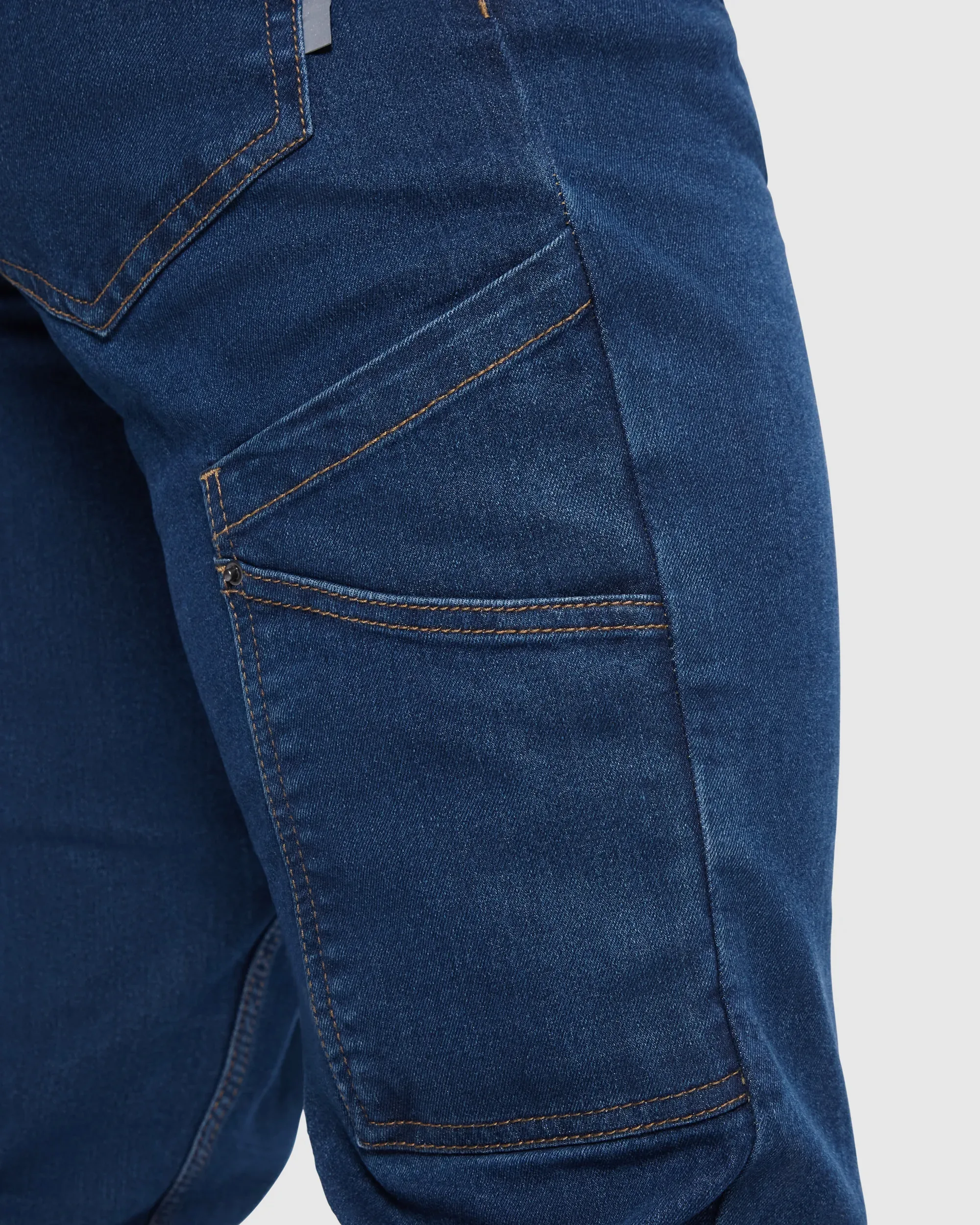 El pantalón vaquero Raptor es un pantalón vaquero multibolsillos con cierre de cremallera de metal y botón. La cinturilla viene con trabillas para poder usar cinturón y para que el diseño sea completo las costuras son a contraste. Y para que te facilite el trabajo tiene un montón de bolsillos. Tiene un bolsillo lateral izquierdo con fuelle, tapeta y cierre de velcro, un bolsillo lateral izquierdo con cremallera y doble bolsillo lateral derecho estrecho. Así que mira a ver si tienes bolsillos suficientes, para el móvil, las llaves, la cartera,…