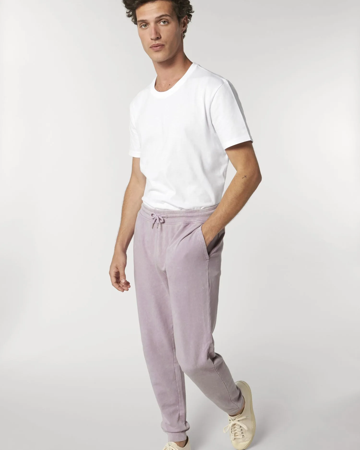 Cinturilla en canalé 1×1 Cordón redondo, en el mismo tono, rematado con extremos de acabado metálico Ojales metálicos Forro interior de bolsillo en punto de jersey Bolsillo de parche trasero Bajo de pernera en canalé 1×1 Puntada doble en cintura, abertura de bolsillo, laterales y bajos Ligero sombreado en las costuras para conferir un aspecto desgastado. Colores envejecidos con efecto lavado irregular en la superficie del tejido. Prenda teñida, la apariencia de cada prenda puede variar, puede desteñir, siga la etiqueta de cuidado Lea detenidamente las recomendaciones de impresión