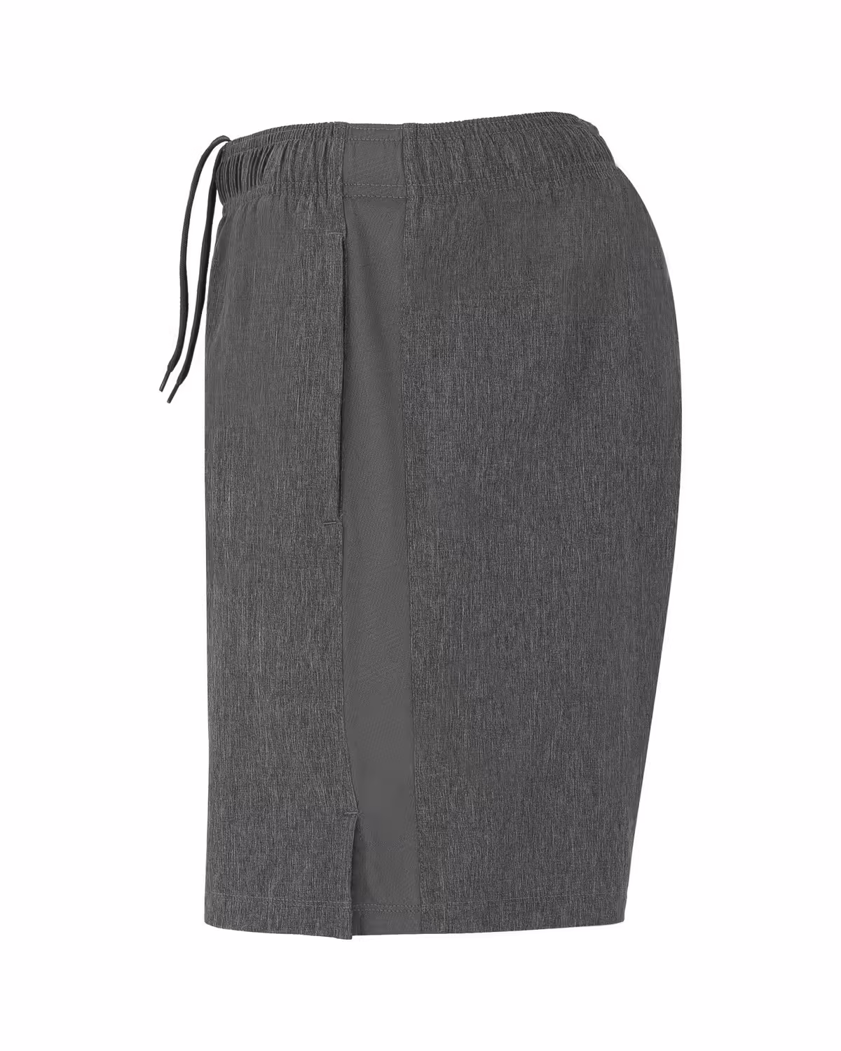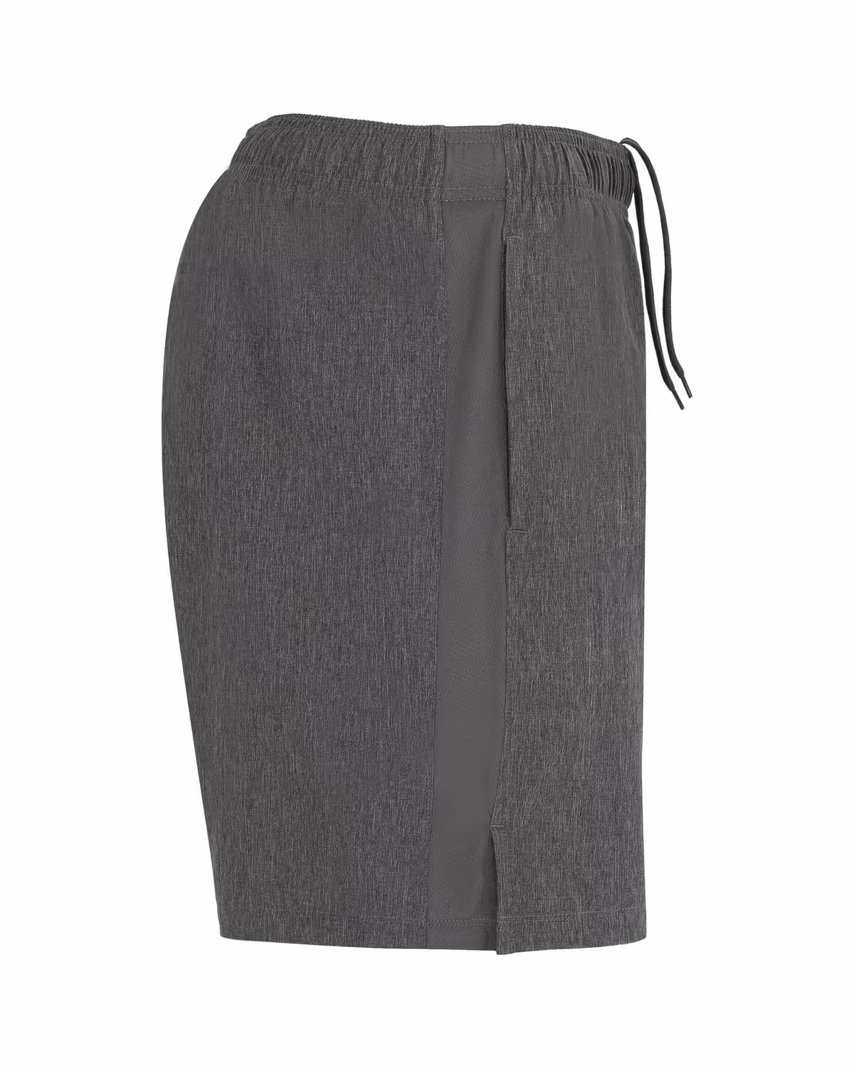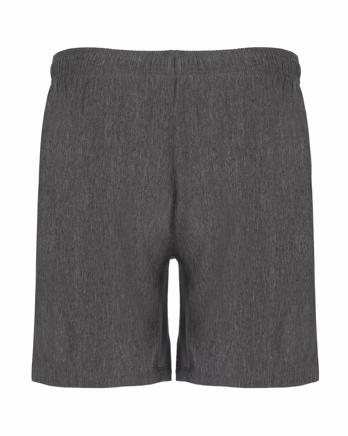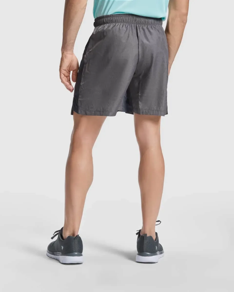 Bermuda multideporte con dos tejidos. Cinturilla elástica con cordón interior cruzado a contraste. Banda lateral e interior de la pierna en tejido transpirable. Dos bolsillos laterales. Apertura lateral en el bajo con forma asimétrica.