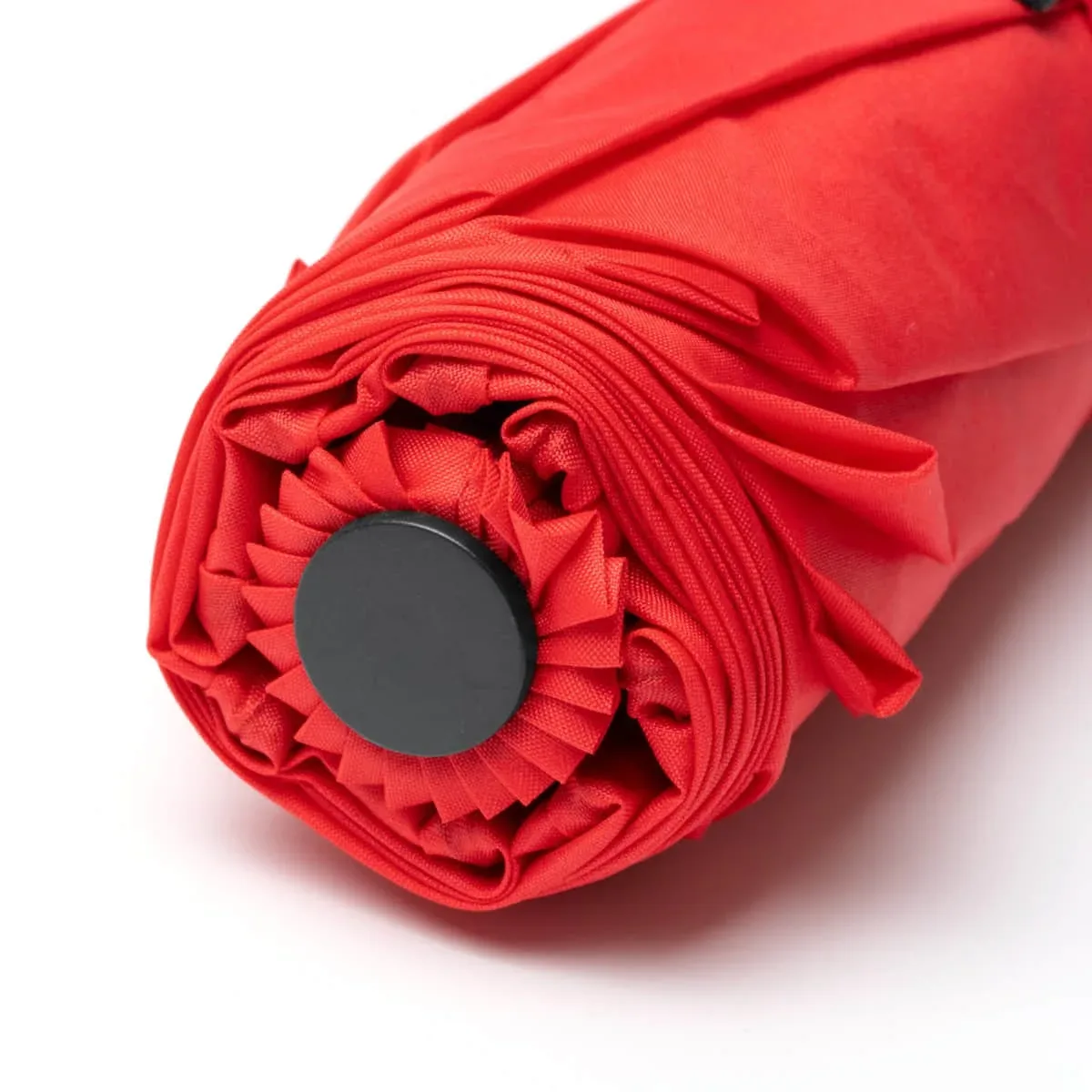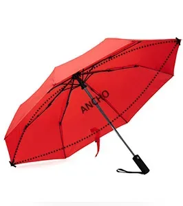 Paraguas para tormentas plegable de apertura automática con mango de goma. Tejido pongee 190T con funda a juego. Varillas de fibra de vídrio en color negro.