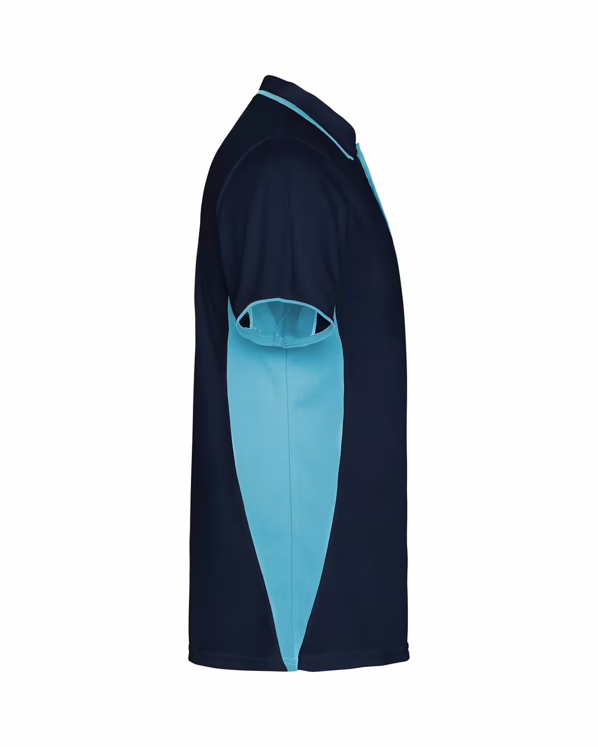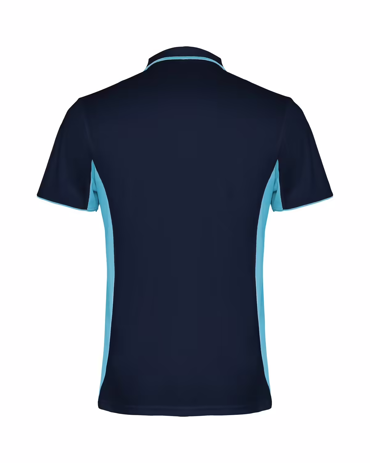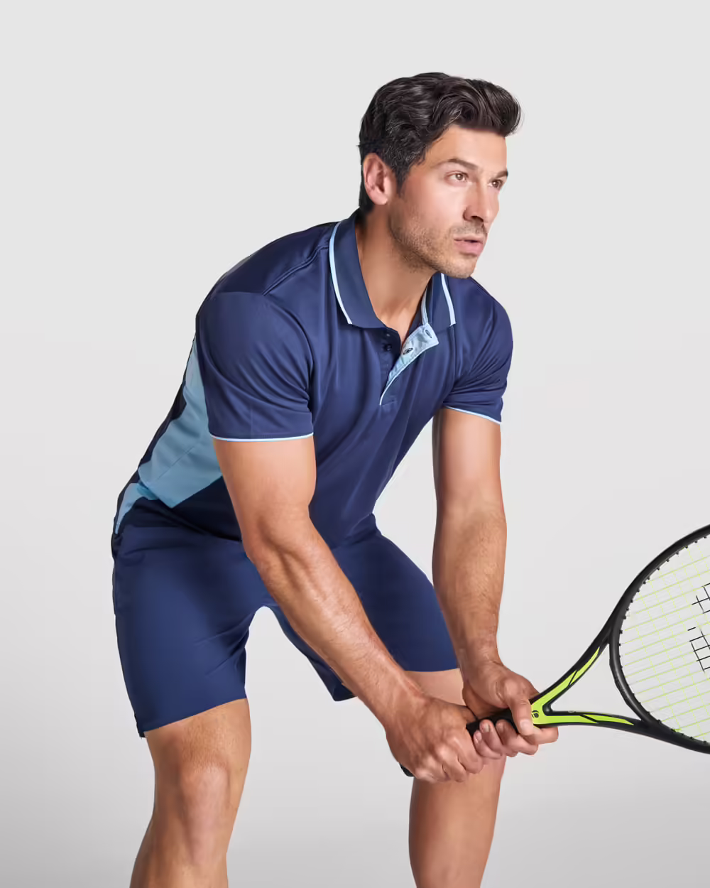Polo técnico en manga corta, especial para deporte. Combinado a dos colores. Cuello con abotonadura, cubrecosturas y tapeta en contraste de color. Tejido transpirable fácil lavado y secado. Moda y tecnicidad a partes iguales.