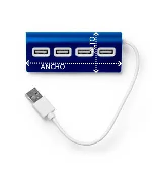 Puerto USB con cuerpo en aluminio, acabado bicolor y cable blanco. Incluye 4 puertos USB.