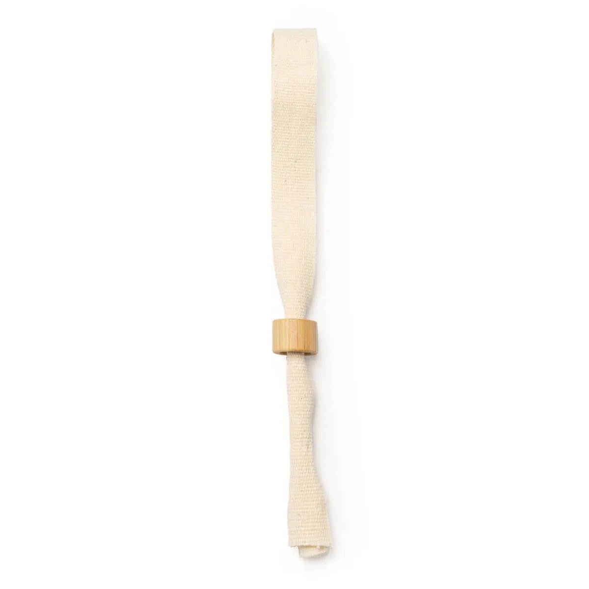 Pulsera de algodón natural con cierre de seguridad (no retornable) en bambú.
