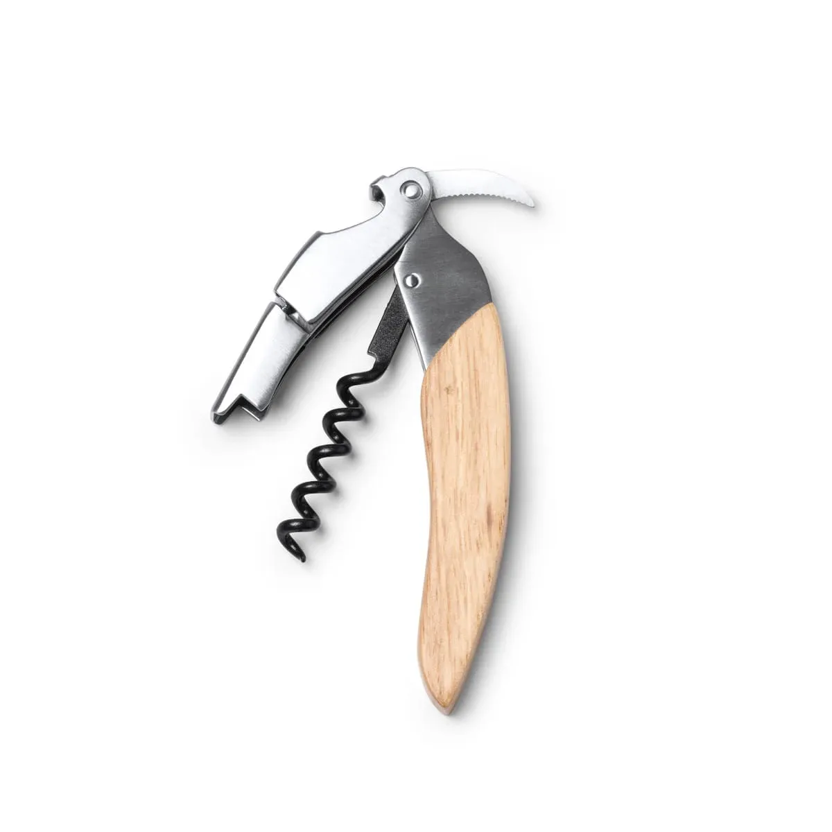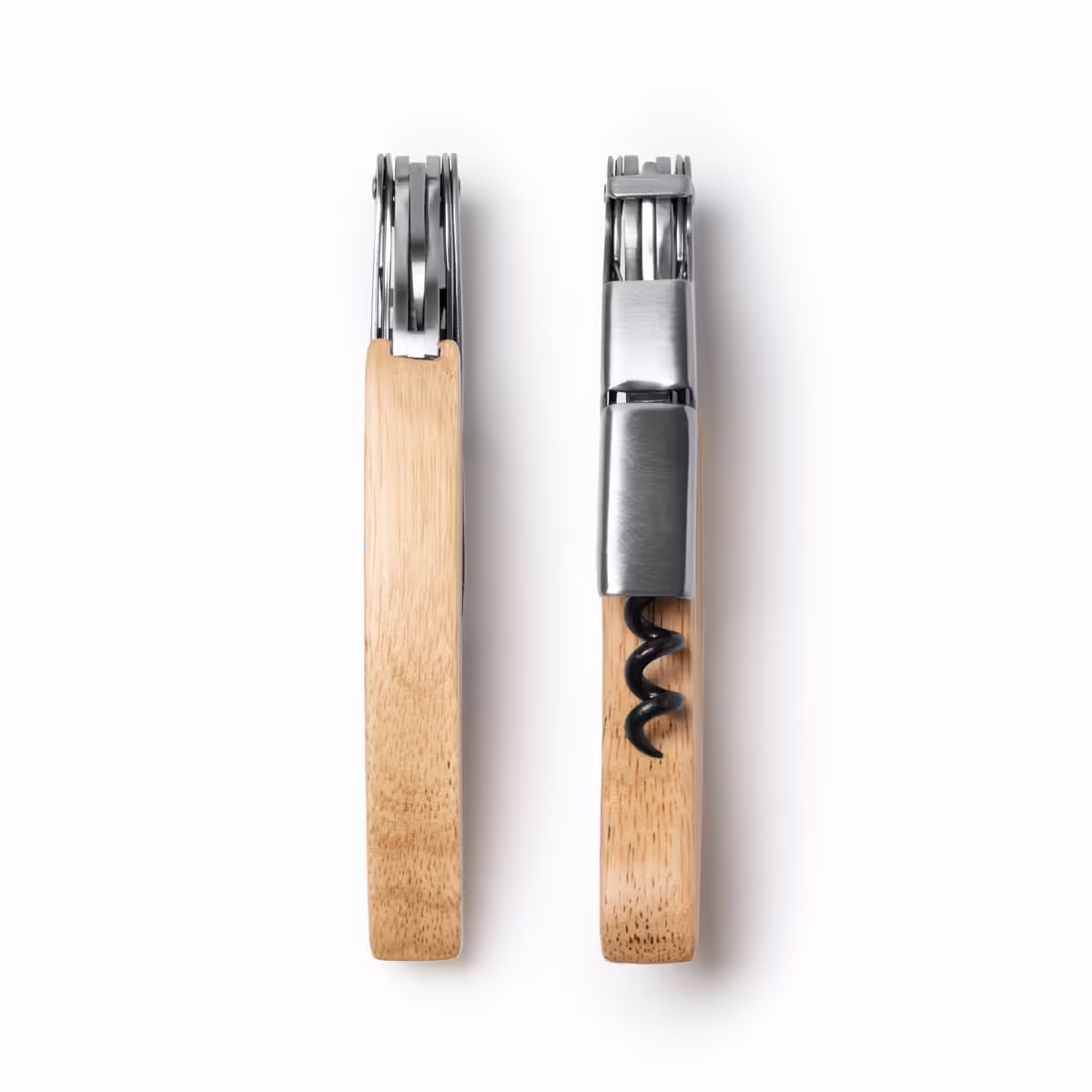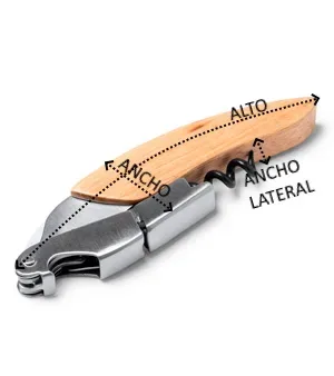 Con este sacacorchos, disfrutarás de la experiencia de abrir una botella de vino de manera práctica y estilizada. El acero inoxidable de alta calidad y el mango de madera combinan a la perfección, creando una pieza duradera y estéticamente agradable.