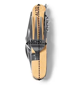 Set de cubiertos multiusos con cuerpo de bambú y accesorios en acero inoxidable. Sacacorchos y navaja.